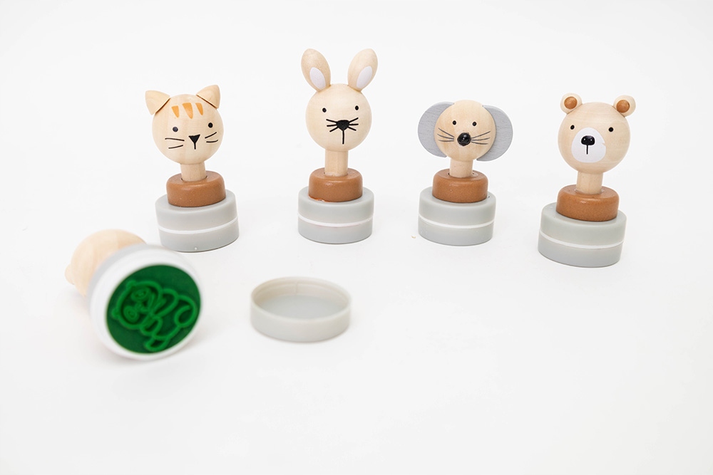 Красочные штампы для детей отпечатывают на бумаге изображение животного, такое же, как и сам штамп.