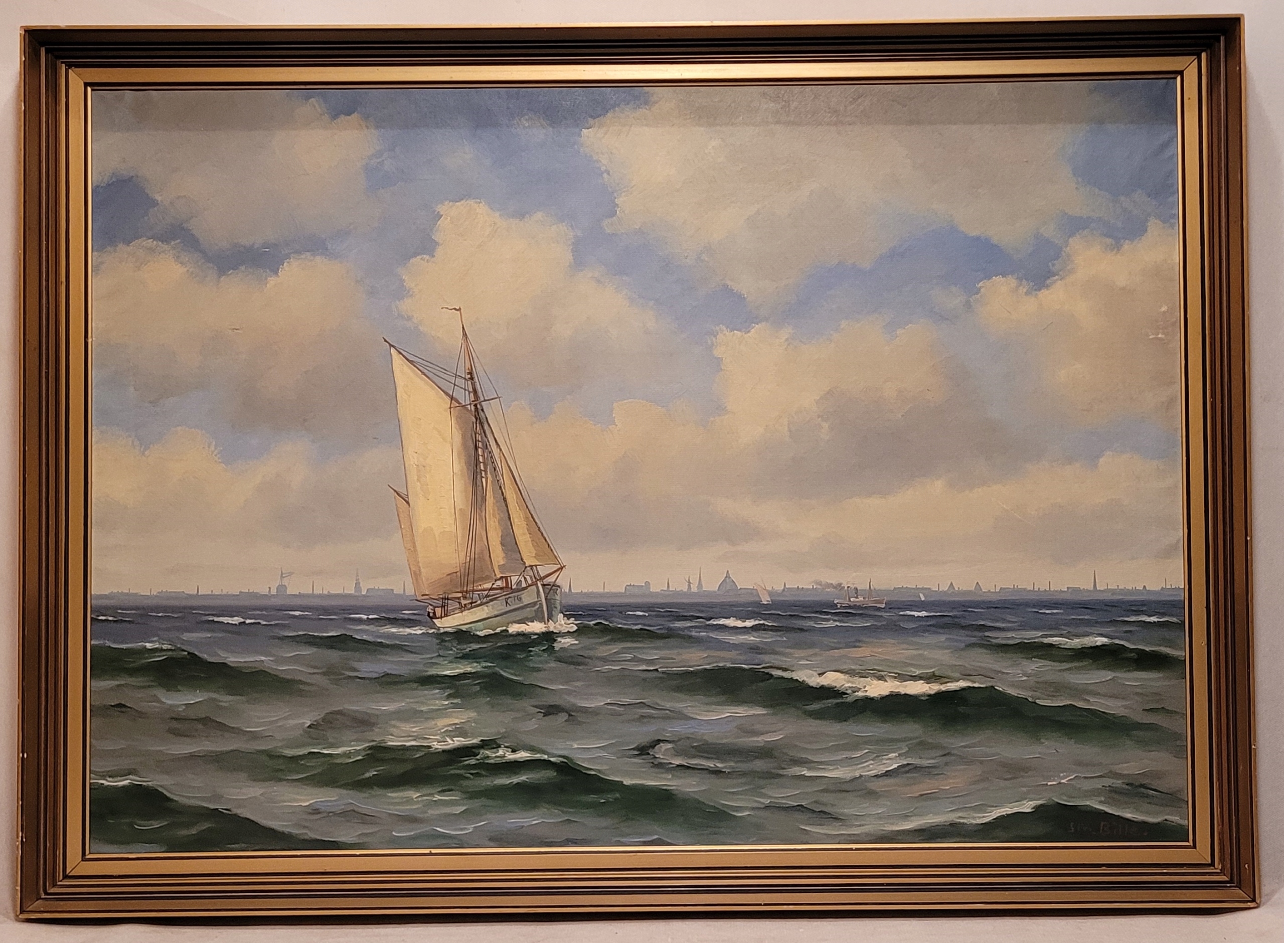 СТЕН БИЛЛЕ (1890 -1953) - "ПАРУСНАЯ ЛОДКА", старая картина маслом.