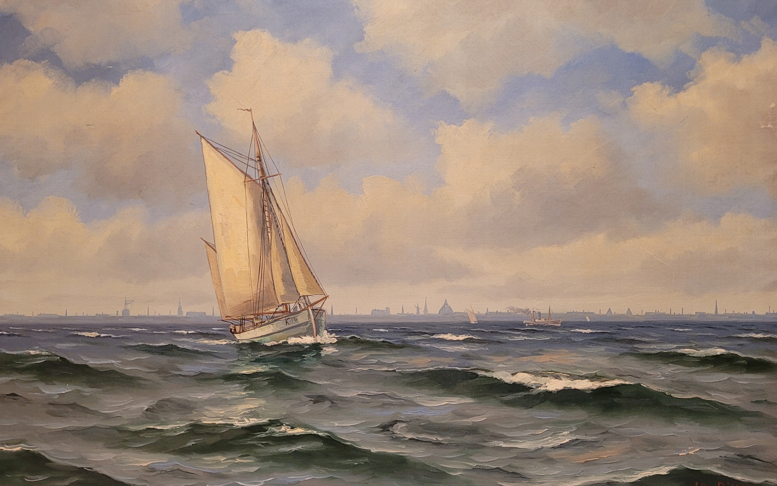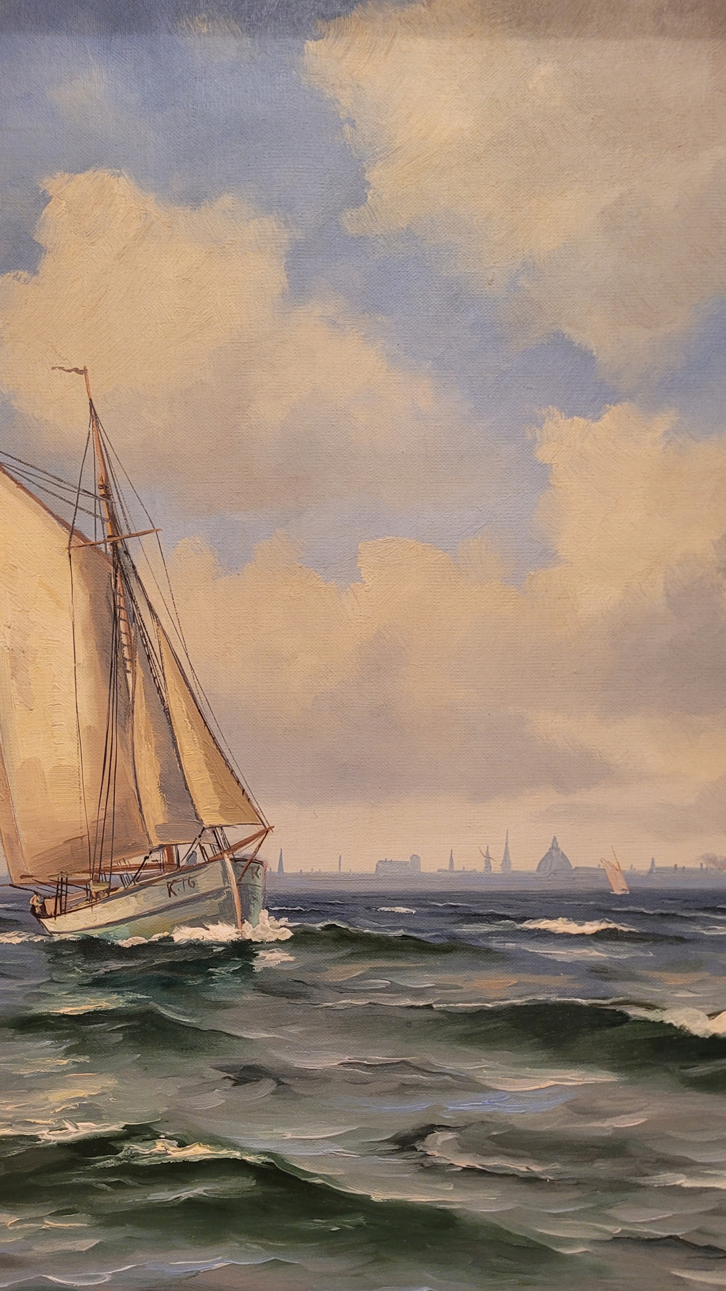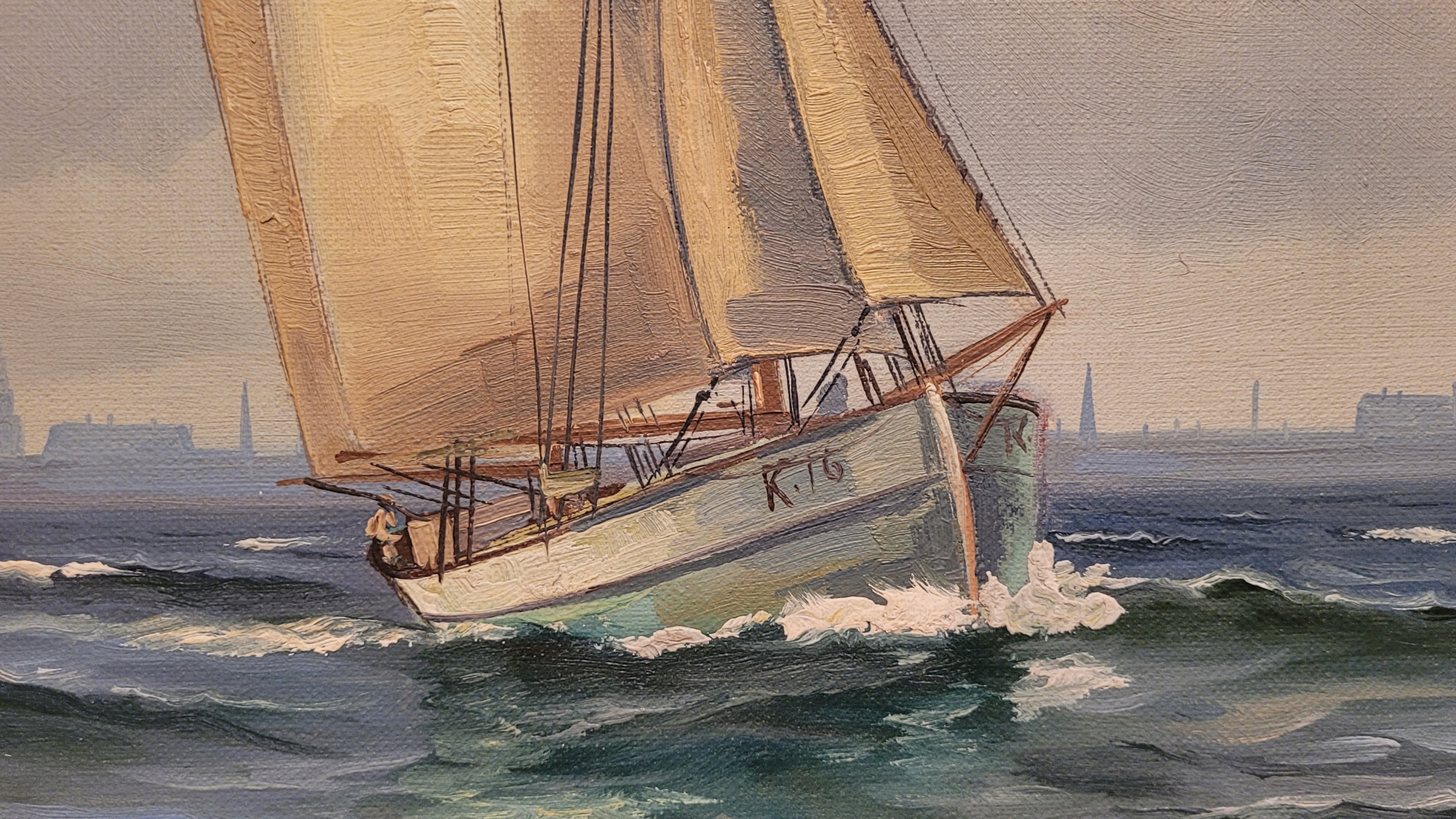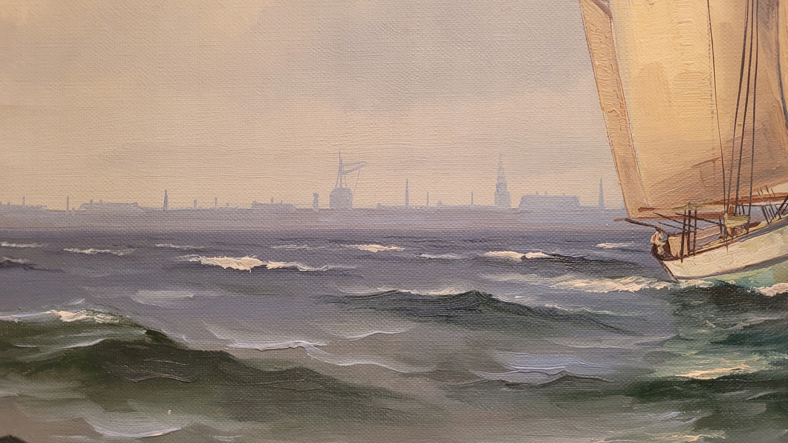 Предмет продажи - красивая, старинная картина маслом «ПАРУСНАЯ ЛОДКА».
