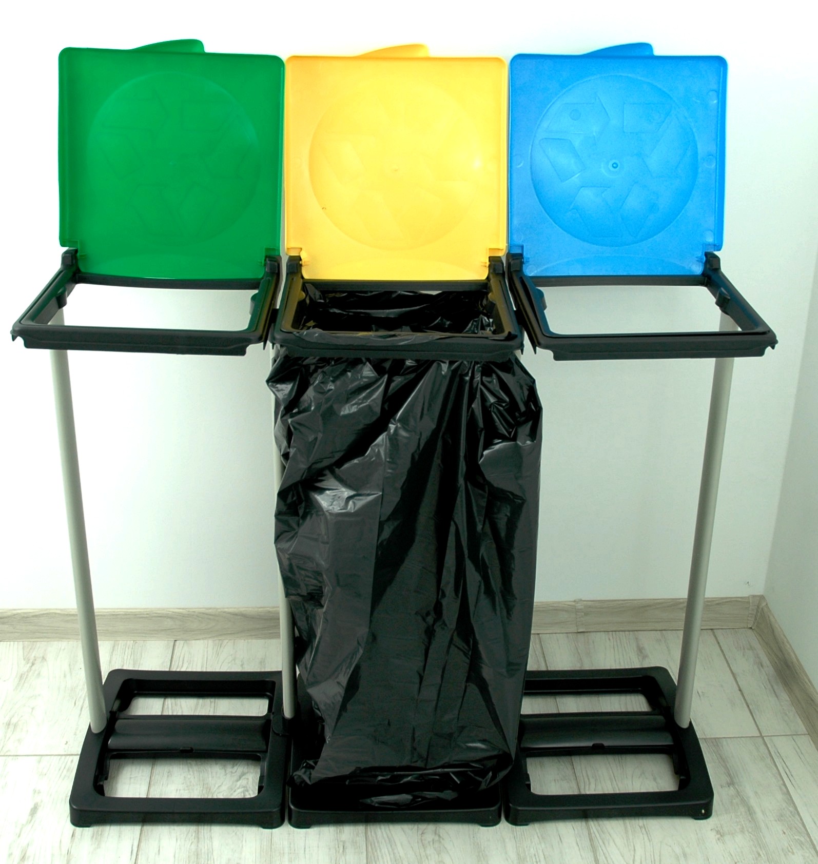 СТЕНД, КОРЗИНА РАЗДЕЛЕНИЯ МУСОРОВ, 3 СТАНЦИИ МУСОРА