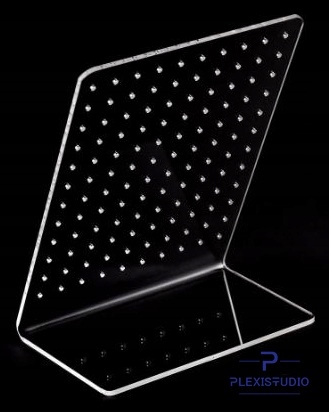 Очень элегантная подставка для сережек из плексигласа. В подставке вырезаны отверстия для удобного подвешивания различных моделей сережек.
