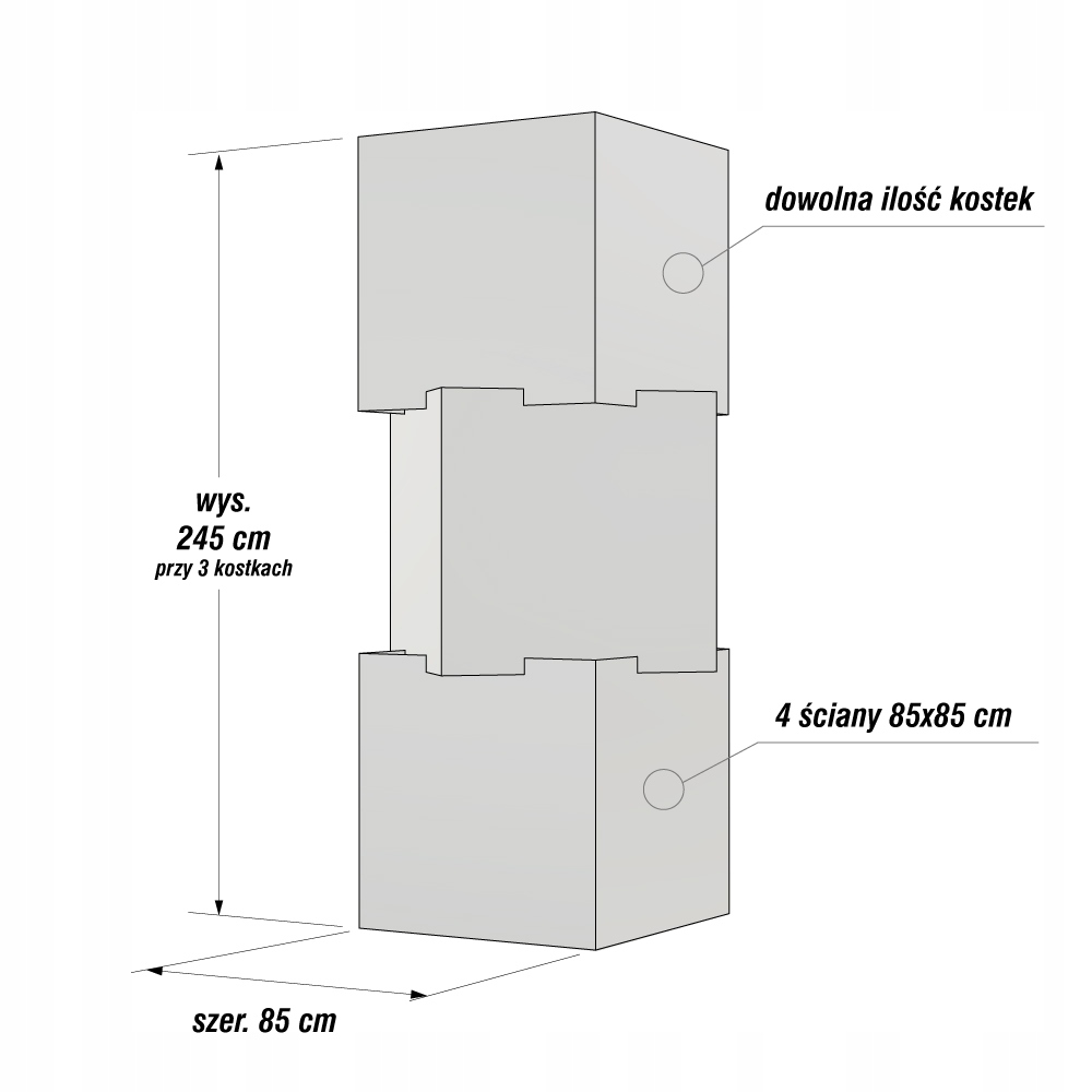 Размер каждой из 12 стен: 85 см x 85 см