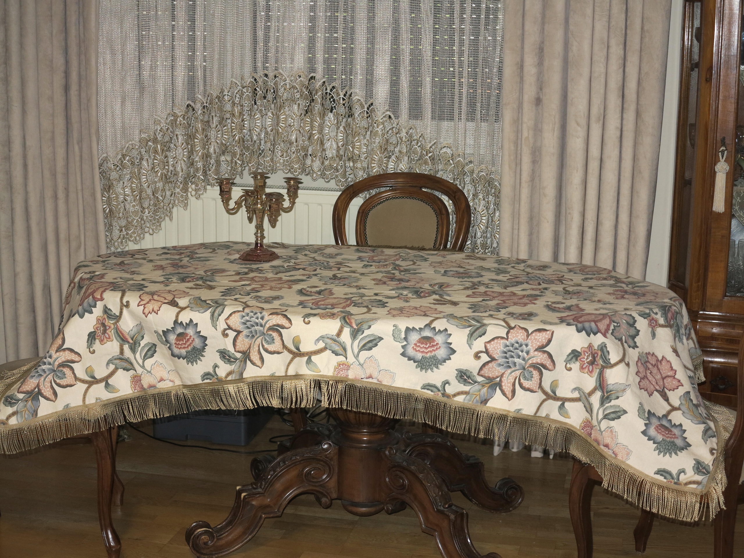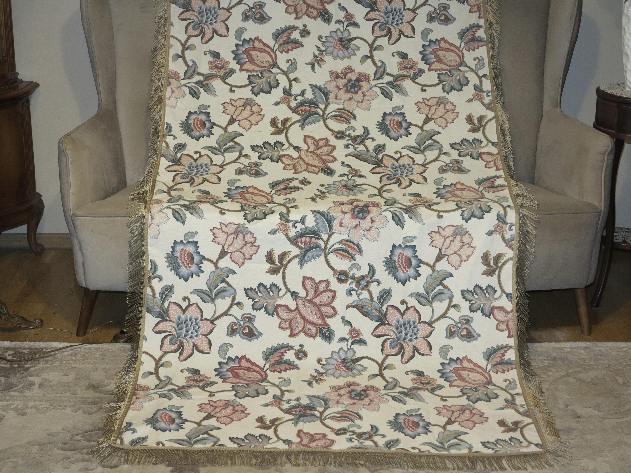 Предмет аукциона – красивая скатерть с декоративными рустикальными цветами. Длинная бахрома вокруг. Размеры скатерти: 203/115см плюс бахрома примерно 7см. Скатерть б/у, в очень хорошем состоянии. Рекомендую
