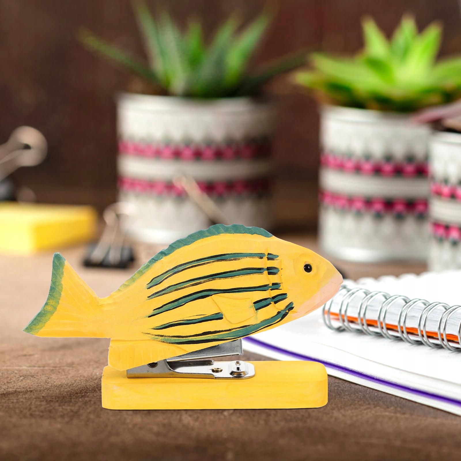 Этот предмет — не только степлер для животных, но и деревянная статуя животного, украшающая ваш стол.