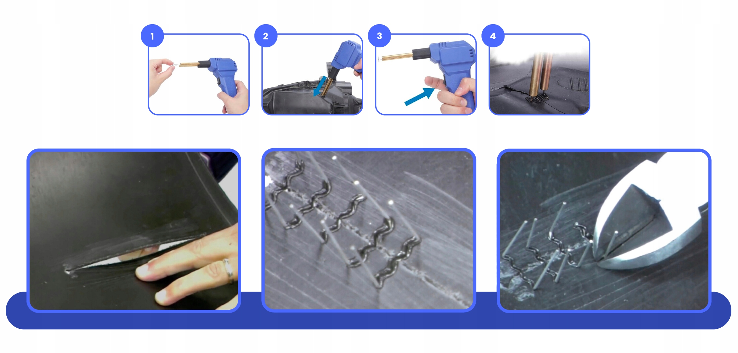 ➡️ Степлер — это простое и надежное устройство, используемое в мастерских и в домашних условиях для устранения повреждений, нанесенных пластику.