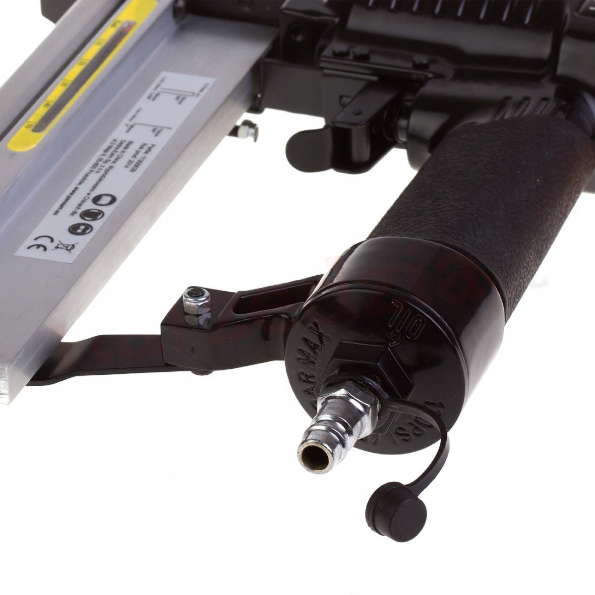 Высокая движущая сила позволяет ему пробивать доски, ДСП и OSB. Его можно использовать и как степлер, и как гвоздезабиватель. Низкая потребность в воздухе означает, что степлер может работать от любого компрессора с воздушным резервуаром.