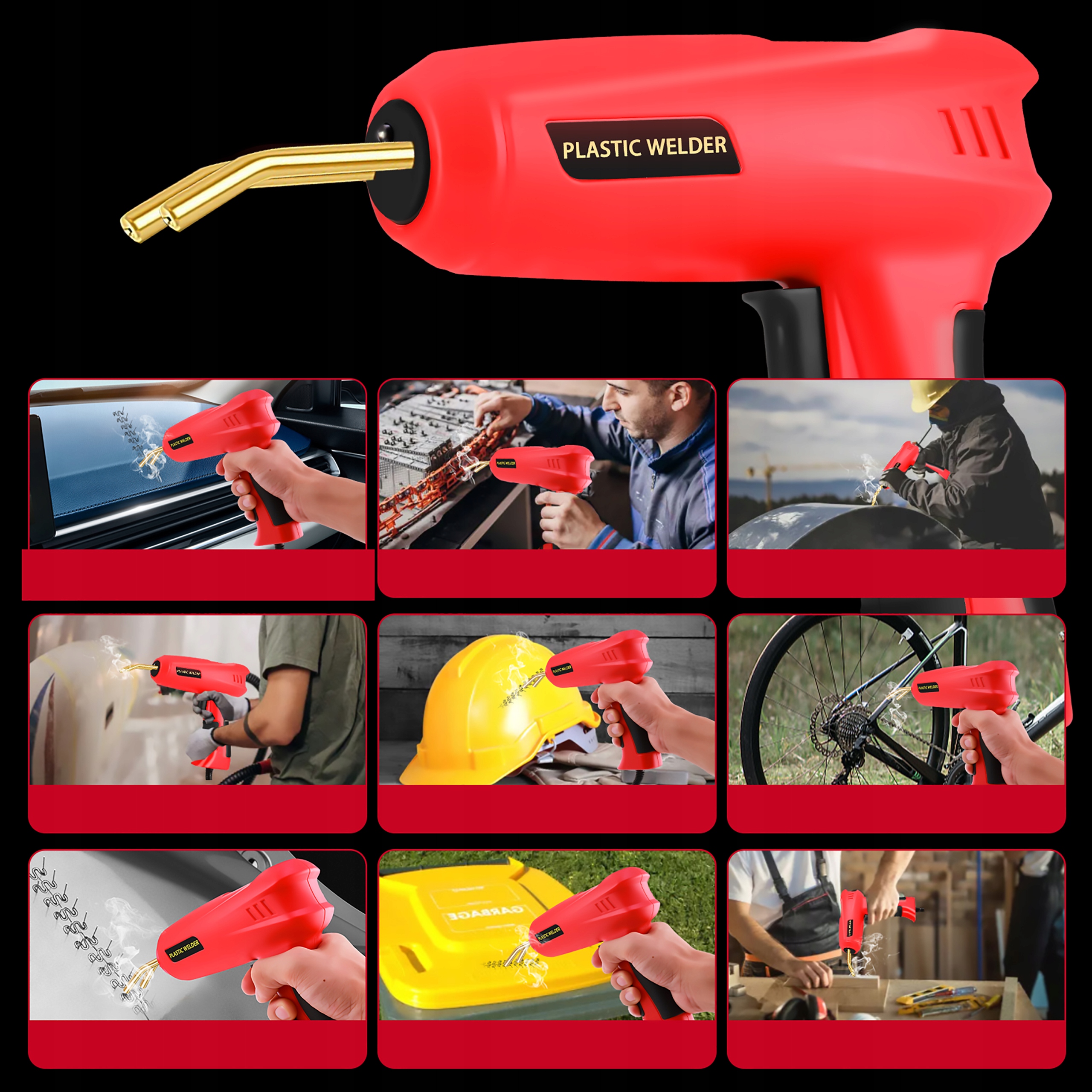 Подходит для автомобильных бамперов, приборных панелей, байдарок, байдарок, детских игрушек для верховой езды и топливных баков. Кроме того, он также может плавить различные пластиковые изделия своими руками.