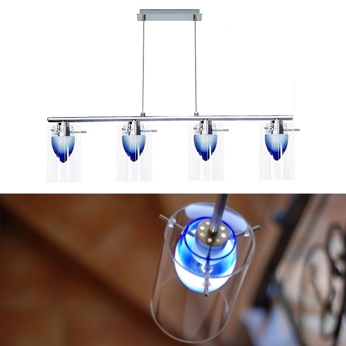 ЦВЕТ ЛАМПЫ - АТАЛОСНОЕ СЕРЕБРЯНОЕ - ПРОЗРАЧНОЕ СТЕКЛО ЛАМПЫ / СИНИЙ