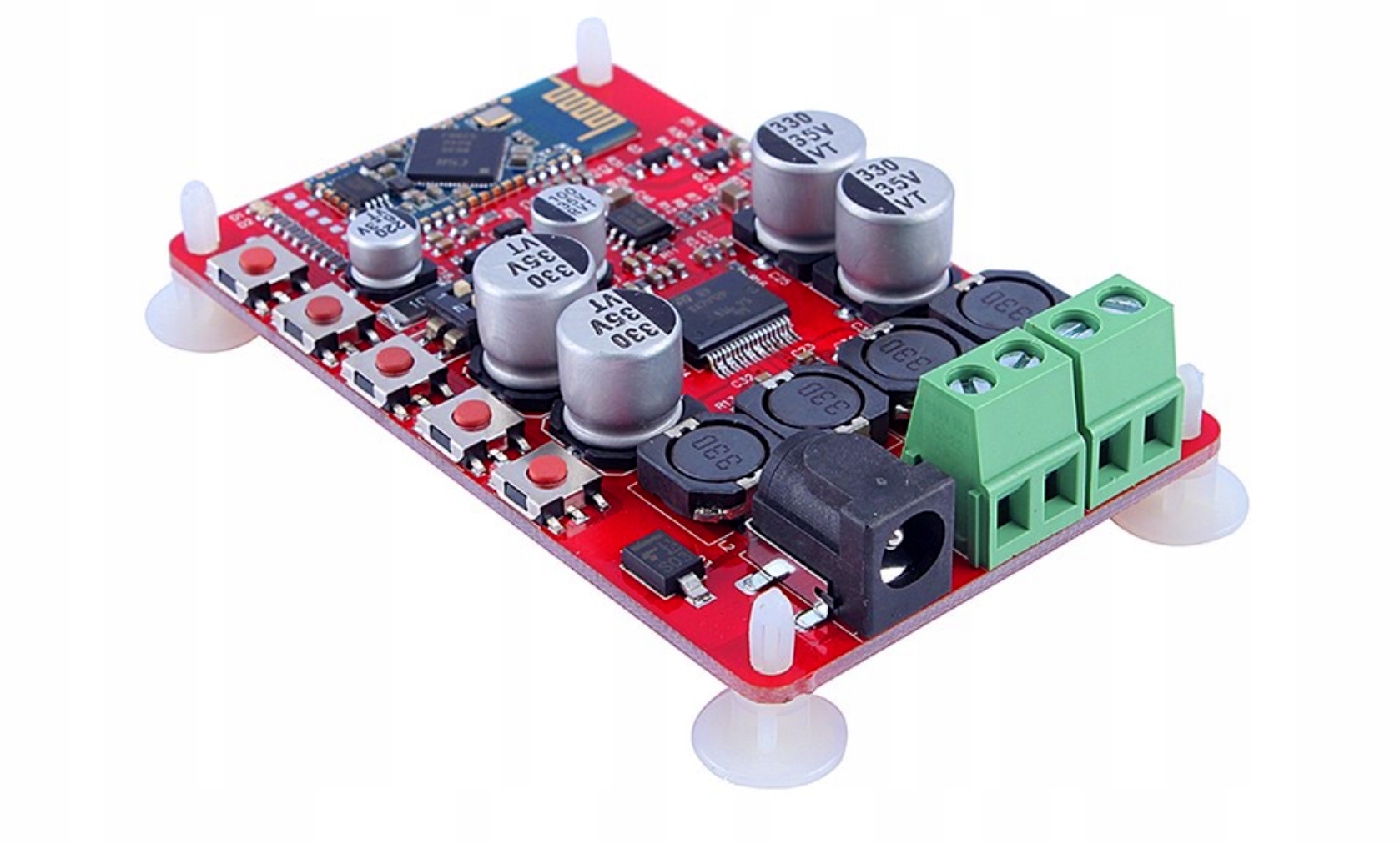Стерео -аудио -усилитель с емкостью 2x50 Вт при 6Ом и 25 В. Модуль построен на основе чипа TDA7492P. Усилитель производится в классе D, что означает очень хорошее качество цифрового усиления, встроенные разъемы клемма блока позволяют вам комфортно прикреплять кабели динамиков, источник питания прикреплен к популярному DC 2.1/5.5