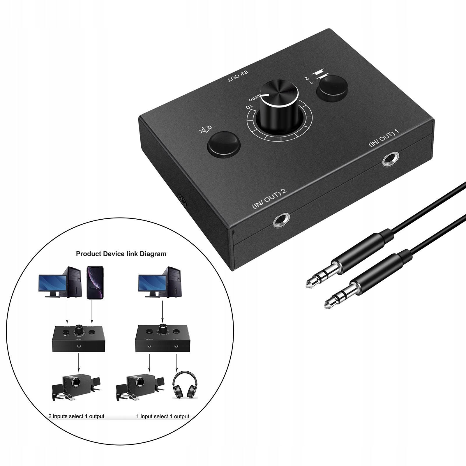 Стерео -аудио -переключатель 3,5 мм: два -часовые аудио -дистрибьюторные дистрибьюторы активные динамики и наушники