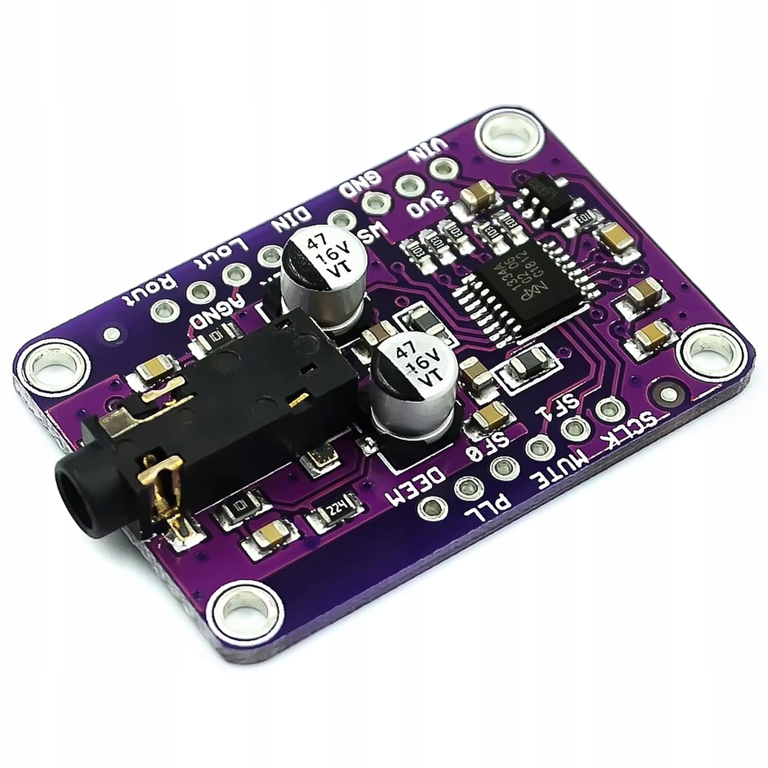 Модуль стереодекодера ЦАП UDA1334A представляет собой высококачественный цифро-аналоговый преобразователь, обеспечивающий связь через I2S, 16-битный, 20-битный и 24-битный интерфейс. Он построен на базе системы NXP UDA1334A, а его блок питания использует рабочее напряжение от 3,3 до 5 В. Уровни логического напряжения платы также составляют 3,3-5В, что позволяет легко сопрягать модуль с широким спектром микроконтроллеров без необходимости использования преобразователей напряжения. Мы можем легко связать его с RaspberryPi, ESP32 и Arduino.
