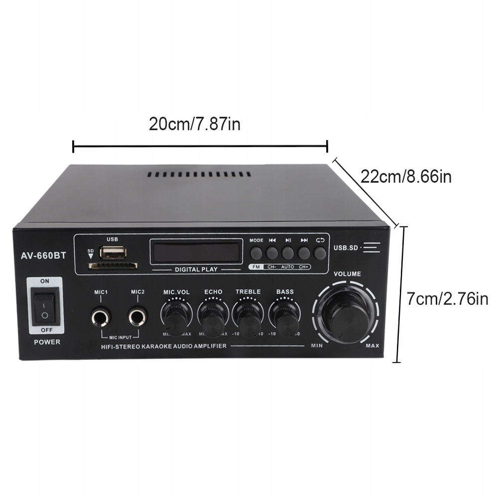СТЕРЕО ПІДСИЛЮВАЧ АУДІО BLUETOOTH 5.0 ЗІ СВІТЛОДІОДНИМ ДИСПЛЕЄМ FM-РАДІО