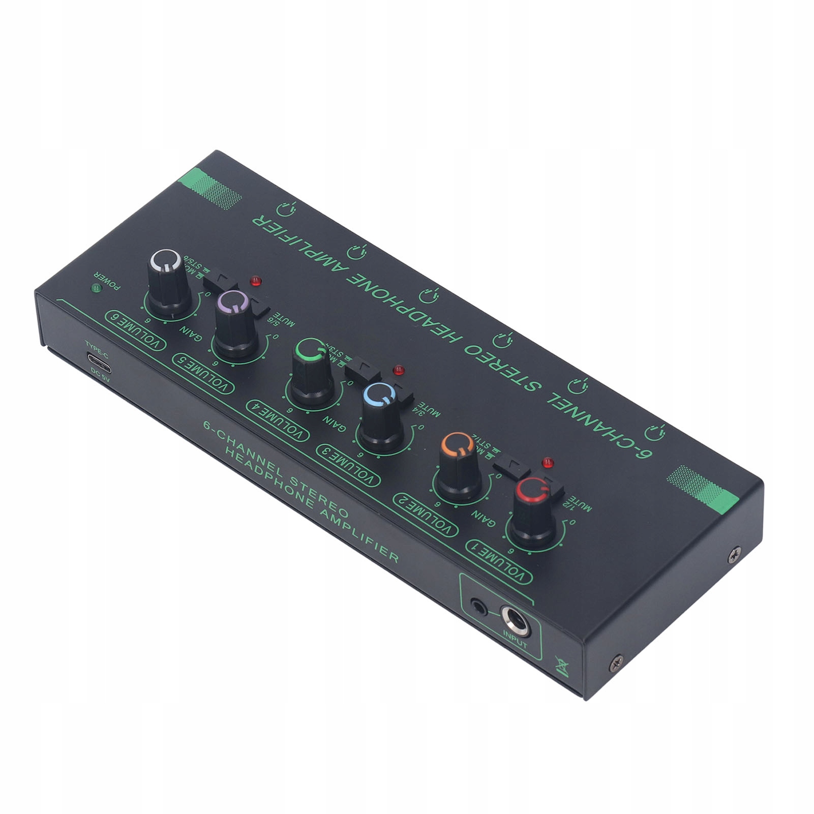 1. 6 каналов: Этот портативный усилитель для наушников имеет 6 портов-разветвителей каналов, каждый из которых может вручную и независимо регулировать громкость, режим вывода и переключение между стерео и моно.