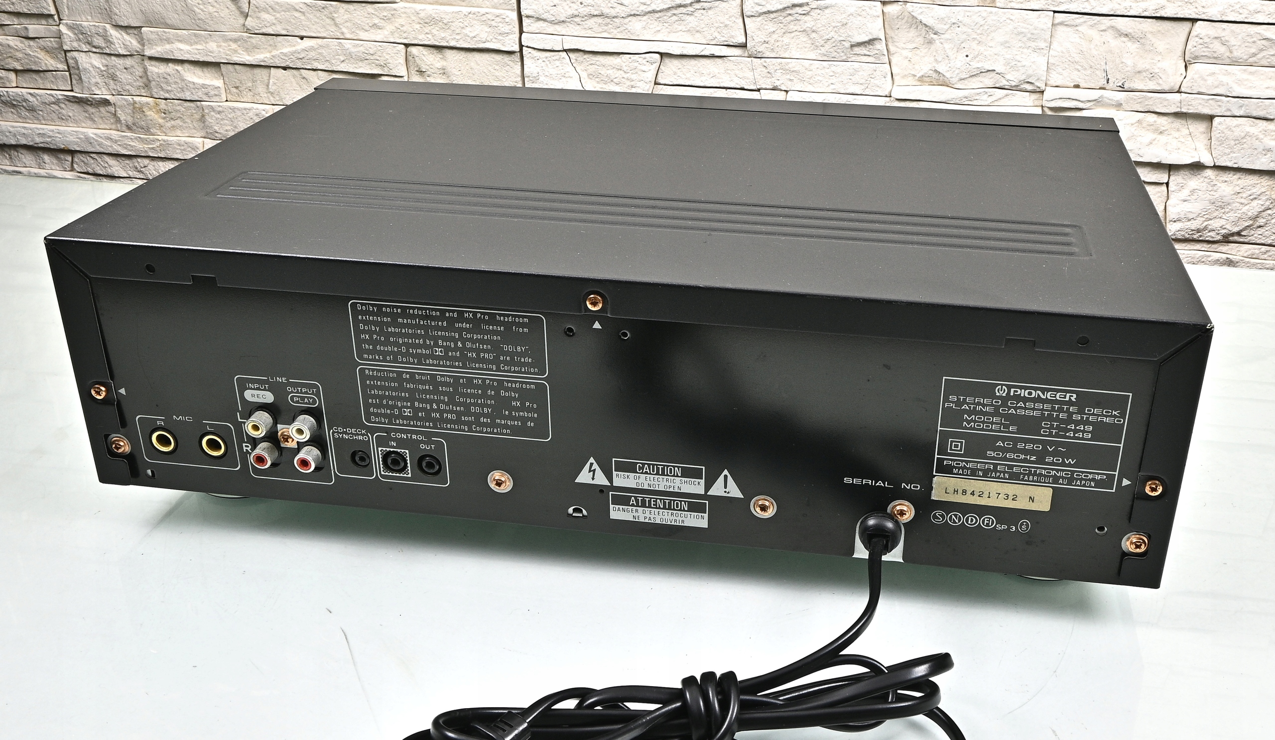 НА ЭТОМ АУКЦИОНЕ МЫ ПРЕДЛАГАЕМ КЛАССИЧЕСКИЙ МАГНИТОФОН PIONEER: Модель PIONEER CT-449 в элегантном ЧЕРНОМ исполнении. Это прочная конструкция, которую ценят за надежный 2-моторный привод, а также за передовые системы шумоподавления Dolby B/C/HX Pro. Он также оснащен системой Auto BLE (калибровка ленты), которая автоматически настраивает запись в соответствии с качеством используемой кассеты. Идеально подходит для любителей аналогового звука!