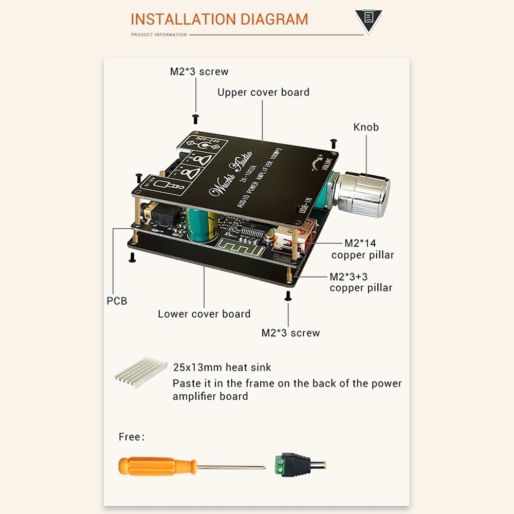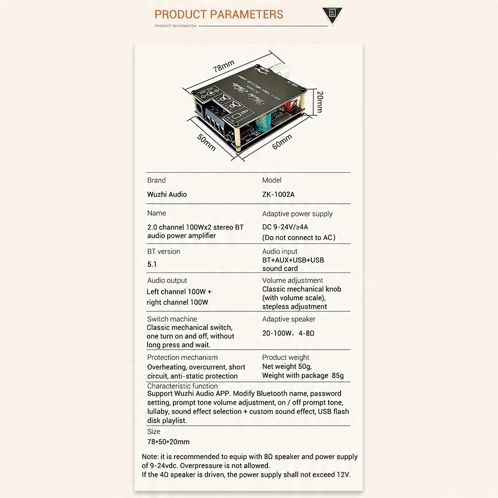 1 * ZK-1002A Модуль платы цифрового усилителя мощности Bluetooth