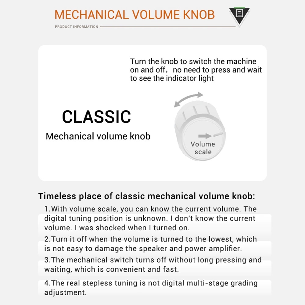 Регулятор громкости: классическая механическая ручка (со шкалой громкости), бесступенчатая регулировка.