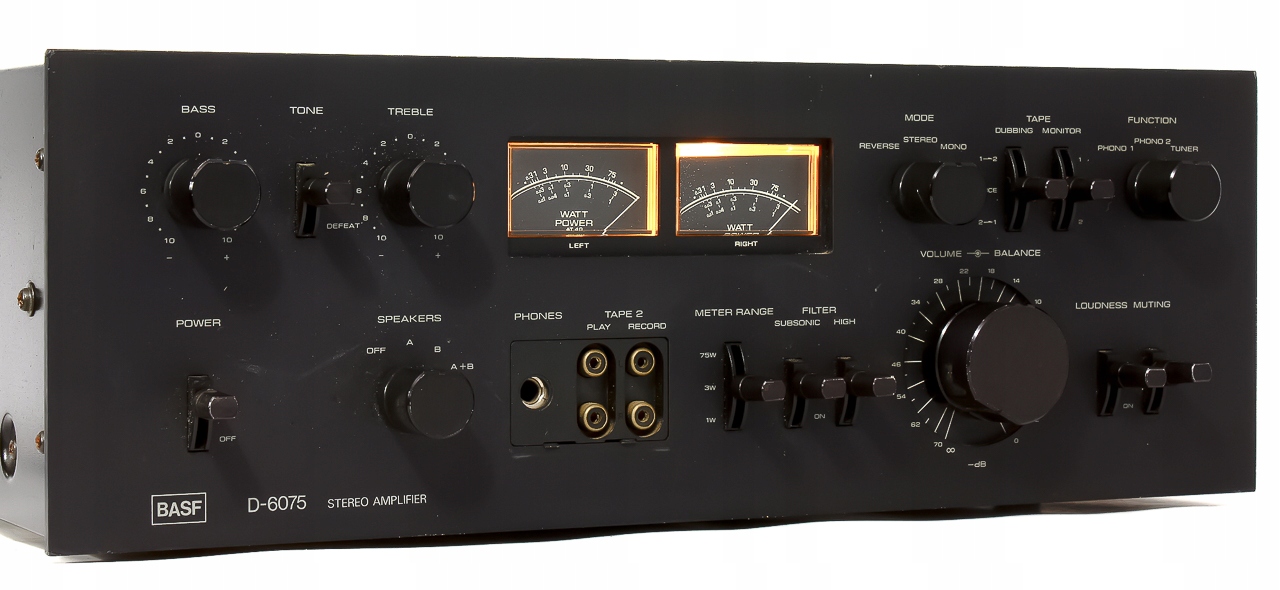 BASF D-6075 — интегральный усилитель конца 1970-х годов. Таким образом, усилителю около 50 лет, и, несмотря на свой возраст, он по-прежнему очень хорошо работает в качестве стереооборудования для прослушивания музыки. Полный двойной моно стереоусилитель с максимальной потребляемой мощностью 560 Вт (эквивалент усилителя NEC AUA-8000). Фантастический звук, мощный блок питания в 560 Вт раскачает любую акустику и доставит массу удовольствия. Редкость на польском рынке, очень редкая модель. Смело покупайте!