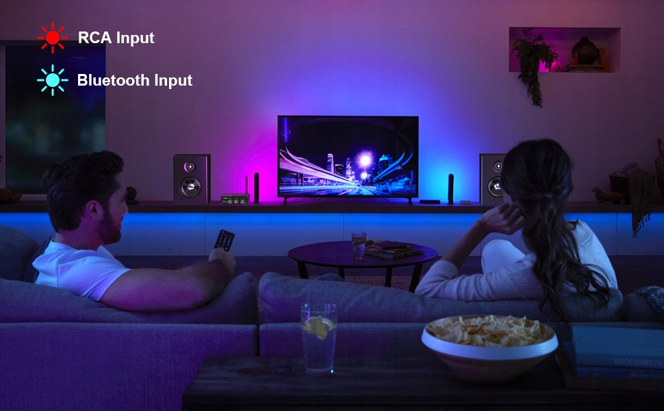 【Вход Bluetooth + RCA】 Этот стереоусилитель HiFi поддерживает аудиовходы RCA и Bluetooth, обеспечивая высокое качество звука, совместимое с большинством звуковых устройств, таких как компьютеры, DVD-плееры, настольные компьютеры, ноутбуки, телевизоры, сабвуферы и т. д. Позволяет использовать его в различных сценариях и наслаждаться радостью, которую приносит музыка.