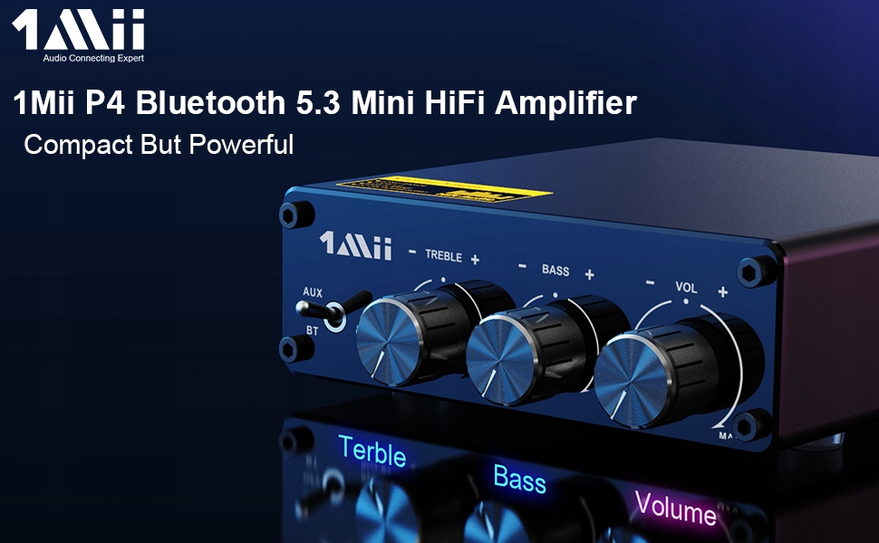 【Регулирование низких и высоких частот】 Усилитель мощности Bluetooth 1Mii имеет независимые ручки громкости для регулировки низких, высоких и общей громкости. Благодаря более глубоким басам и более сильным эффектам высоких частот вы почувствуете себя на концерте.