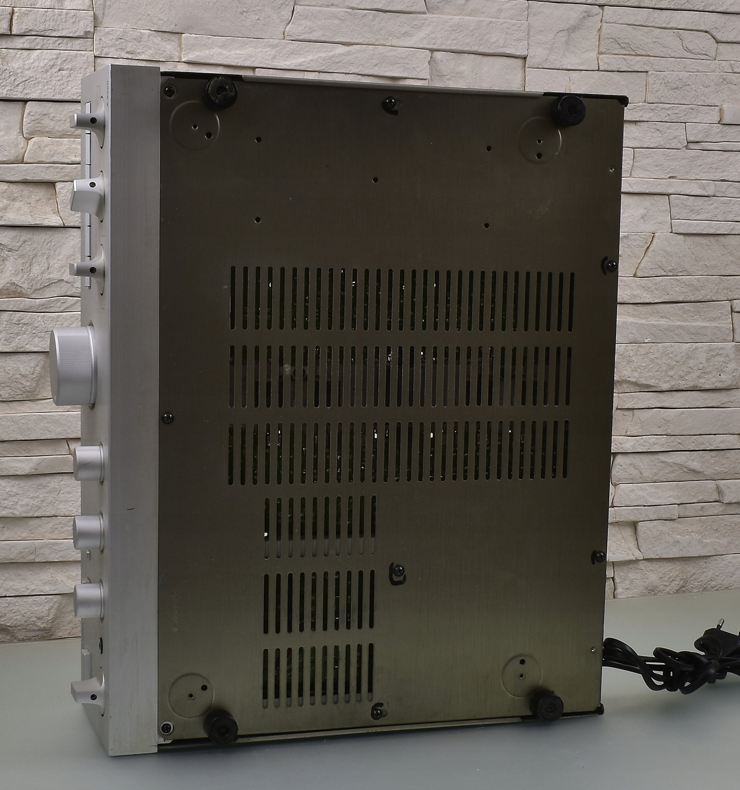 Красивый и мощный усилитель ONKYO из эксклюзивной серии INTEGRA. Усилитель построен с использованием компонентов высочайшего качества, что гарантирует надежность и звук на очень высоком уровне. Конструктивно он чрезвычайно прочный и впечатляет своим весом и габаритами. Звук действительно мощный. Бас идет очень низко, и в то же время быстро, поэтому не грохочет. Кроме того, у него красивые, открытые средние частоты и кристально чистое сопрано. Рекомендую, потому что данная модель очень редка на вторичном рынке!