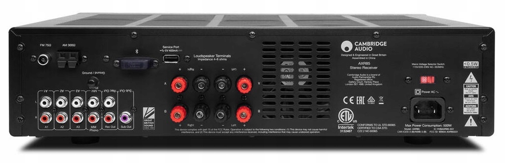 AXR85 может похвастаться мощностью 85 Вт на канал, встроенным фонокорректором, входом 3,5 мм на передней панели, встроенным FM/AM-радио с RDS и 30 памятью, а также четырьмя аналоговыми входами. Кроме того, Bluetooth-приемник позволяет транслировать музыку с внешнего устройства.
