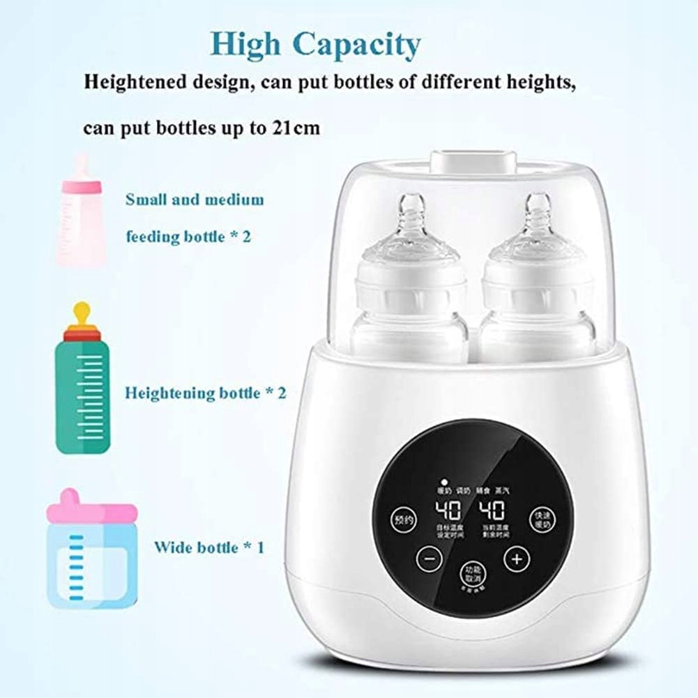 Подогреватель бутылочек BPA изготовлен из полипропилена, не содержащего BPA. Здоровый и экологически чистый, при нагревании не выделяются вредные вещества и мама в большей безопасности. Многофункциональное 4 в 1 для подогрева молока и готовых пищевых продуктов для нагрева, быстрого размораживания, стерилизации паром при температуре 100°С. Подходит для бутылочек всех размеров. Благодаря запасам воды и пара в подогревателях для детских бутылочек, все основные ингредиенты пищи для ваших ангелов. Подогреватель для бутылочек большой емкости с двойной конструкцией и усиленной защитной крышкой подходит для большинства типов бутылочек, доступных на рынке. Очень большой диаметр и высота, его очень легко чистить. Система термостата и противосухой подогрев. Подогреватель бутылочек позволяет поддерживать постоянную температуру молока и детского питания, предотвращая потерю питательных веществ. Лучший согревающий эффект, чем нагрев в микроволновой печи. Мягкая разморозка и сохранение полезных веществ, регулировка температуры нагрева в пределах 40. Следите, чтобы молоко и продукты не кипели, это не разрушает первоначальную питательность продуктов.