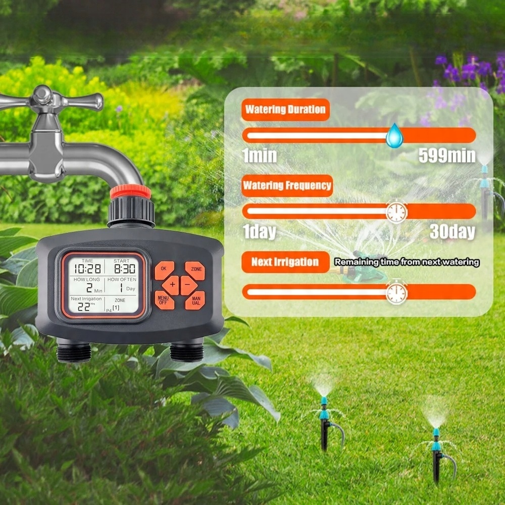 Sterownik automatyczny nawadniania 2 sekcje na kran LCD Programator czasu