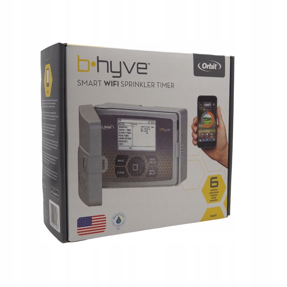 Внешний онлайн-контроллер орошения Orbit B-Hyve предназначен для управления 6 электромагнитными клапанами. Имеет встроенный модуль Wi-Fi, который позволяет управлять системой полива из любой точки мира. Приложение b•hyve, доступное с любого смартфона или веб-браузера, позволяет осуществлять удаленное управление путем размещения программного обеспечения в облаке. Контроллер Orbit b-hyve совместим с программным обеспечением Amazon Alexa для умного дома.