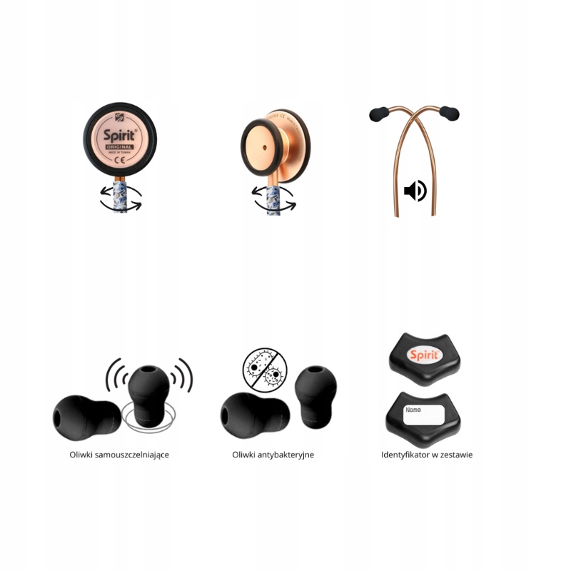 В комплектеСтетоскопа из розового золота имеются бактериостатические и самоуплотняющиеся мягкие ушные вкладыши. Они изготовлены из высококачественной резины, обеспечивающей отличную изоляцию от внешних звуков.