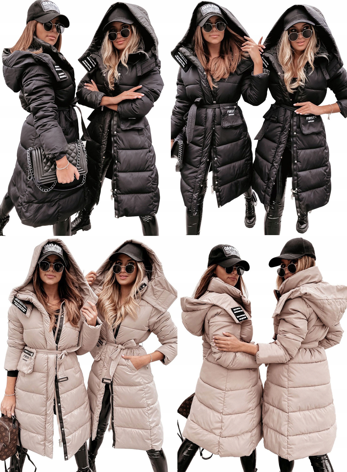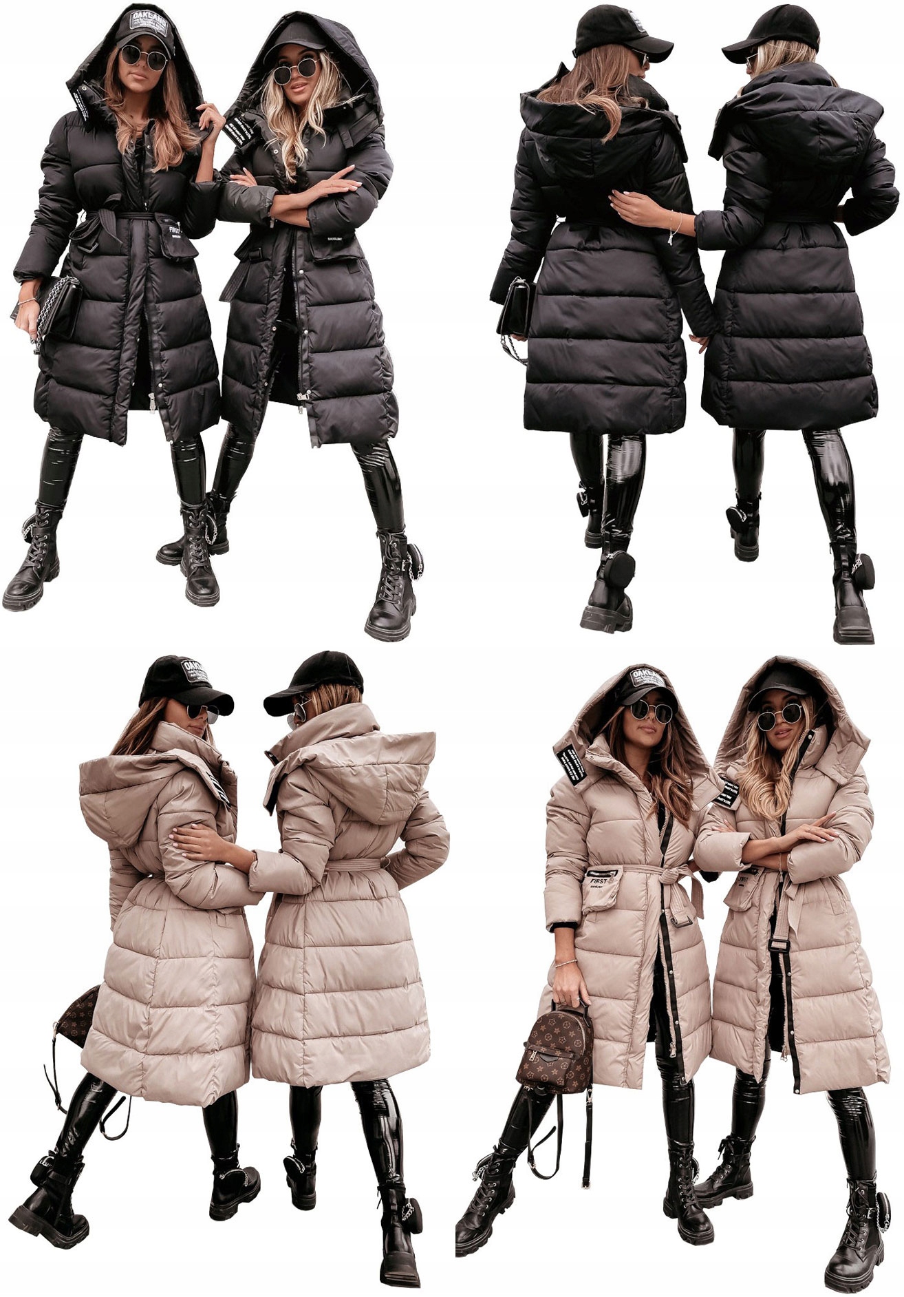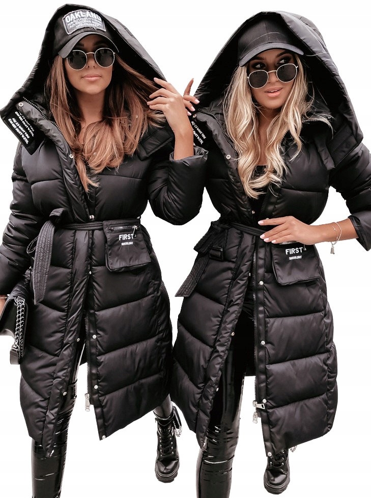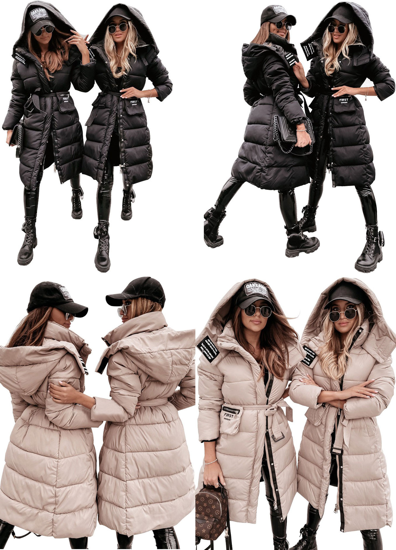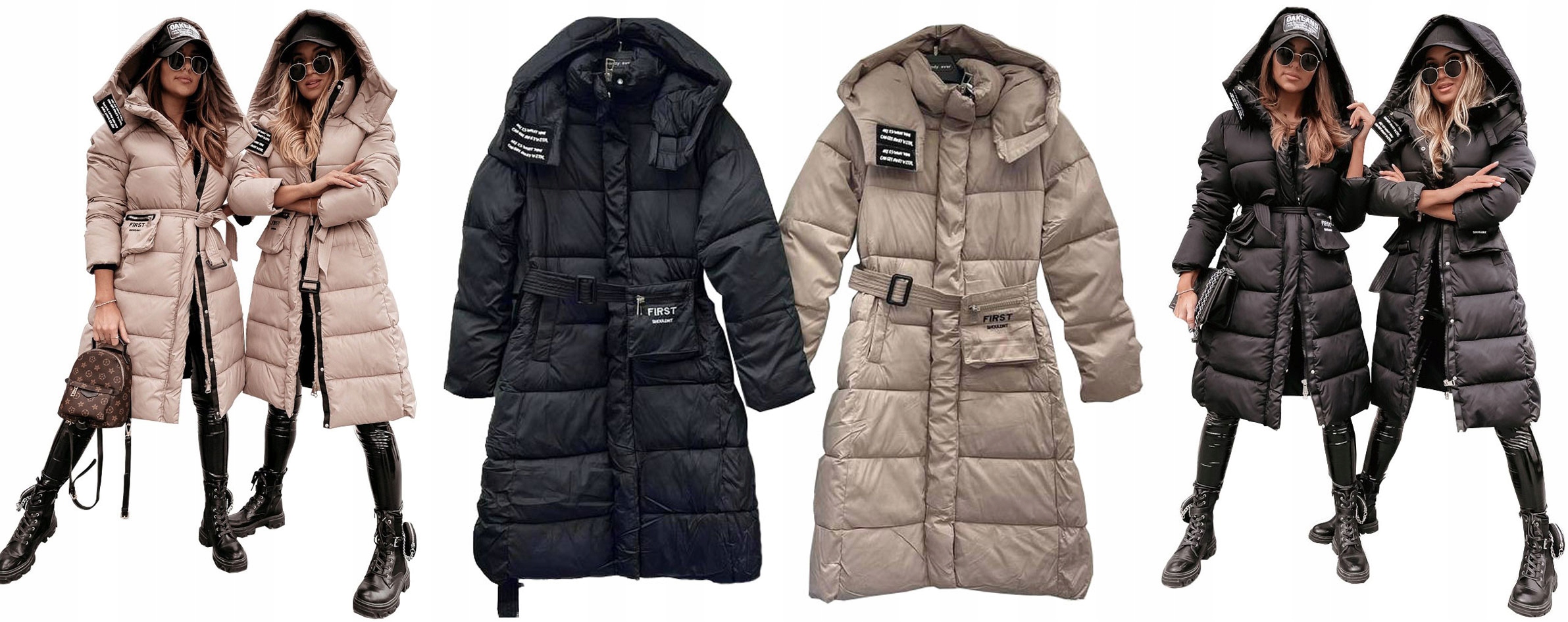 СТЕГАНОЕ ПАЛЬТО С ПОЯСОМ И СУМКОЙ ДЛИННАЯ ПАРКА С КАПЮШОНОМ S