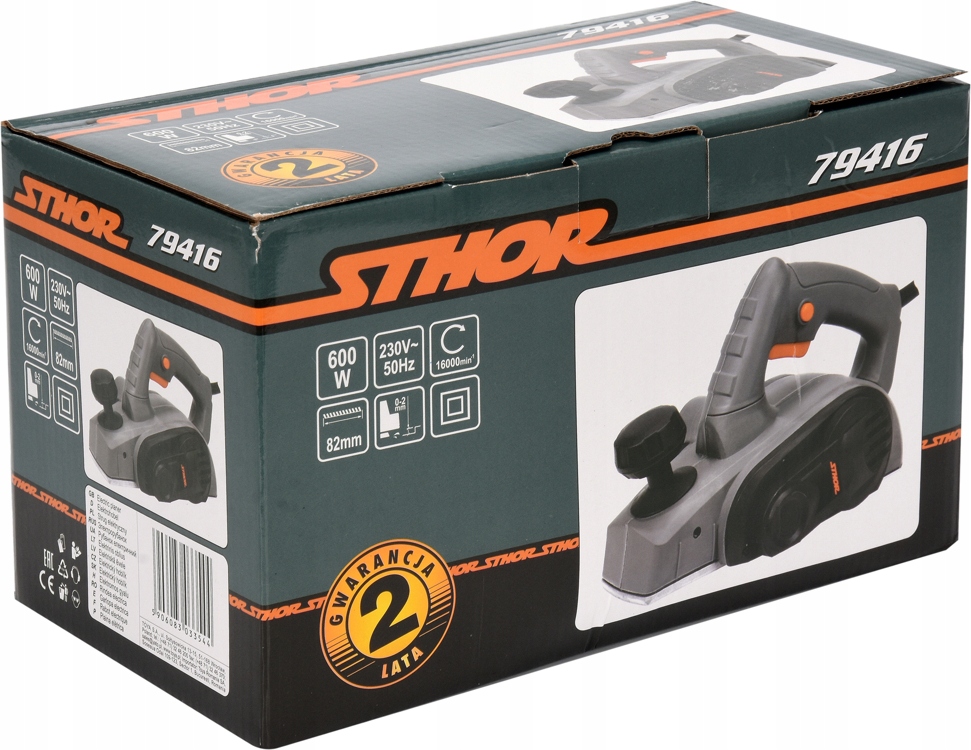 Эффективный строгальный станок STHOR мощностью 600 Вт, предназначенный для обработки древесины и древесноподобных материалов.