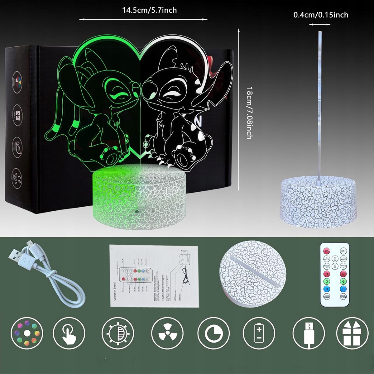 STICH STITCH 3D СВЕТОДИОДНЫЙ НОЧНИК ДЛЯ СТОЛА RGB ЦВЕТА ДЛЯ ДЕТЕЙ USB ПУЛЬТ ДИСТАНЦИОННОГО УПРАВЛЕНИЯ