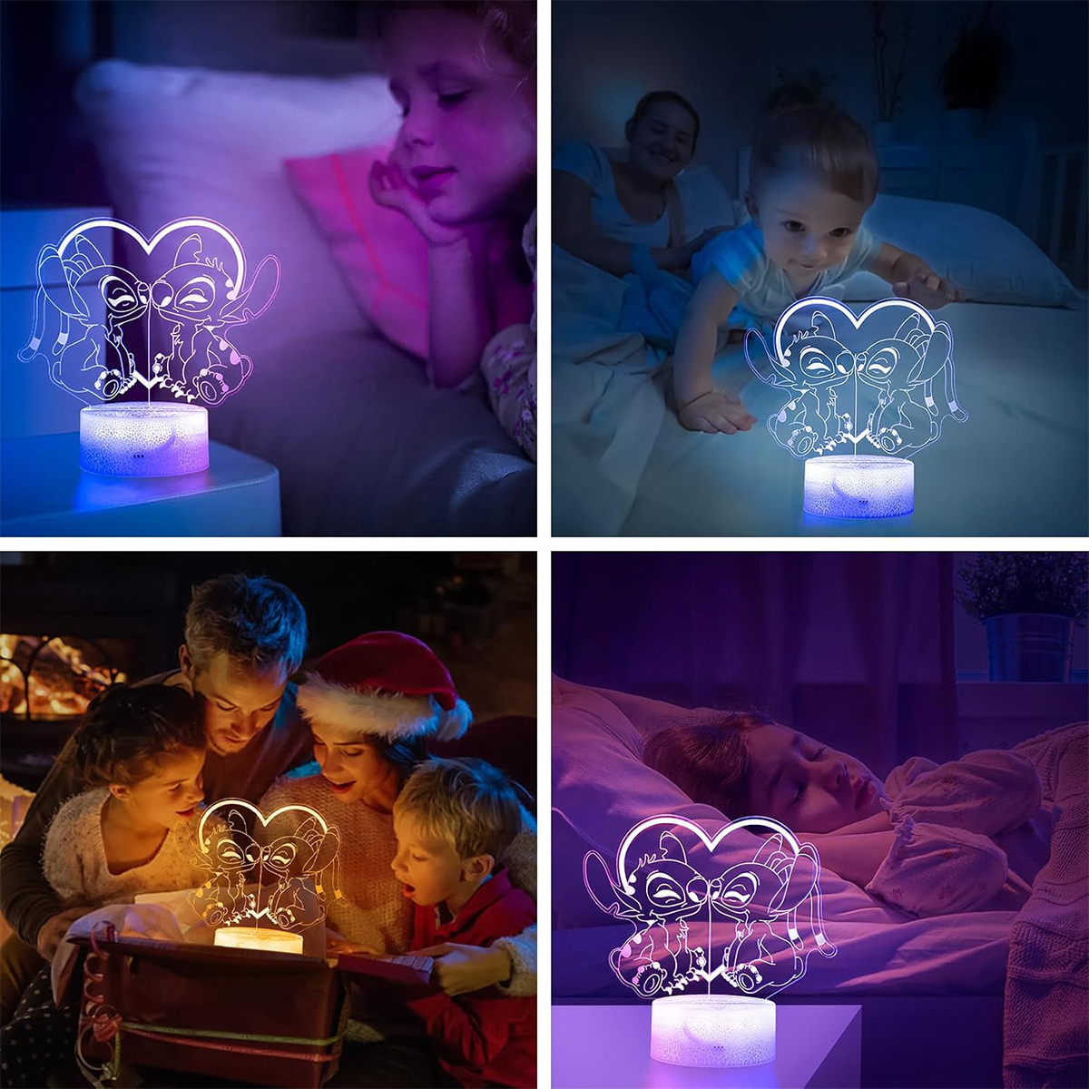 Лампа Stitch — 3D-акриловая светодиодная лампа с 16-цветной сменой цвета и дистанционным управлением, идеально подходящая для подарка на день рождения или праздник