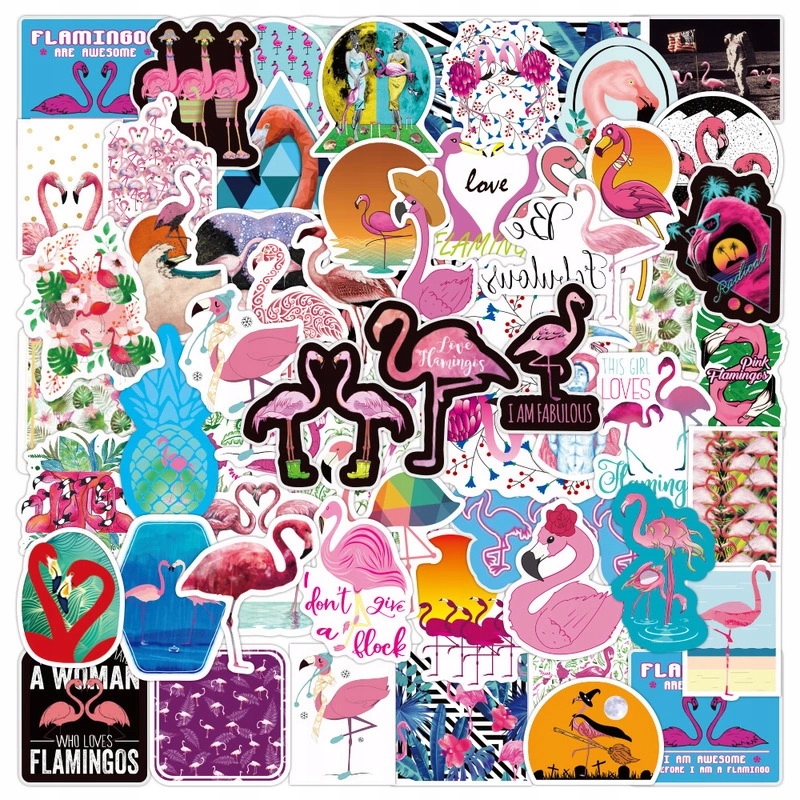 СТИКЕР-БОМБА НАКЛЕЙКИ ДЛЯ НОУТБУКА МИКС ФЛАМИНГИОНЫ 50 шт.