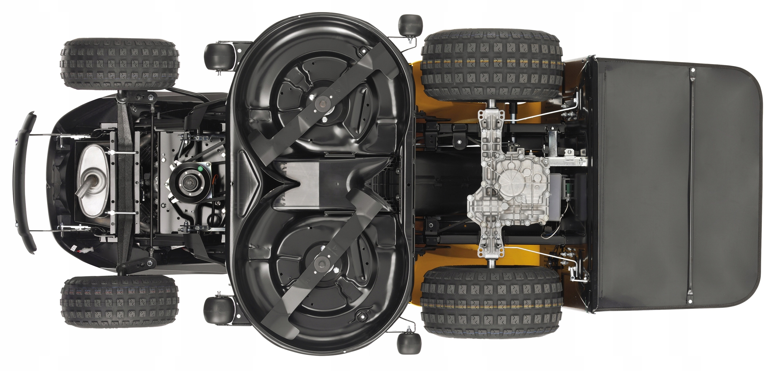 Устройство построено на прочной раме, а корпус изготовлен из ударопрочной и устойчивой к деформации стали. Абсолютно тяжелый, чугунный передний мост и широкие шины обеспечивают отличную устойчивость машины даже в очень сложных условиях. Кроме того, агрегат оснащен колесами, которые предотвращают повреждение газона при маневрировании по холмистой местности.