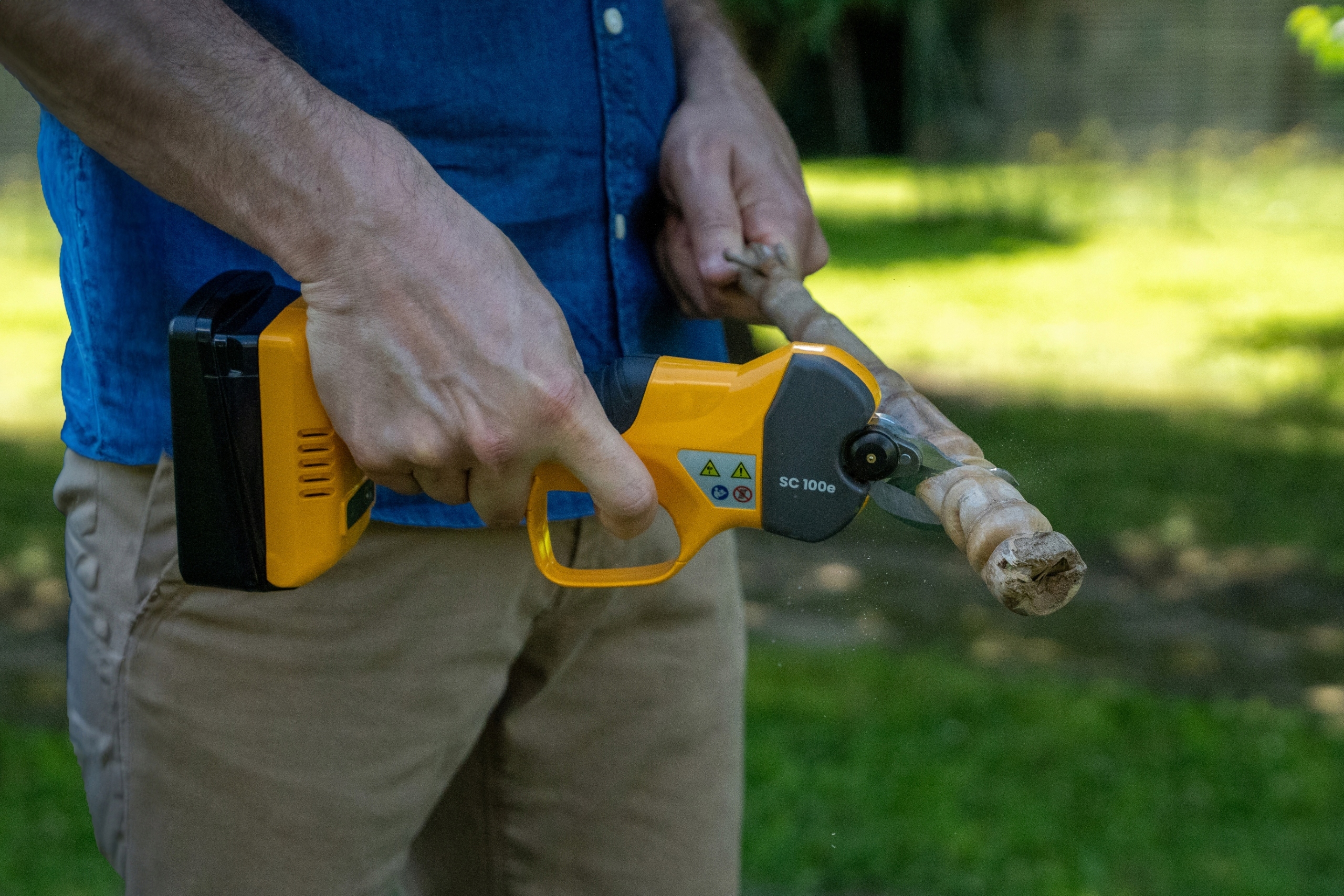 Обрезки ножницы могут быть адаптированы к типу разрезанного растения. Клинок имеет регулировку открытия в трех позициях - 15, 20 и 30 мм . Вариант особенно полезен при разрезании толстых кустарников, когда места для маневрирования инструмента намного меньше, чем в случае более толстых ветвей.