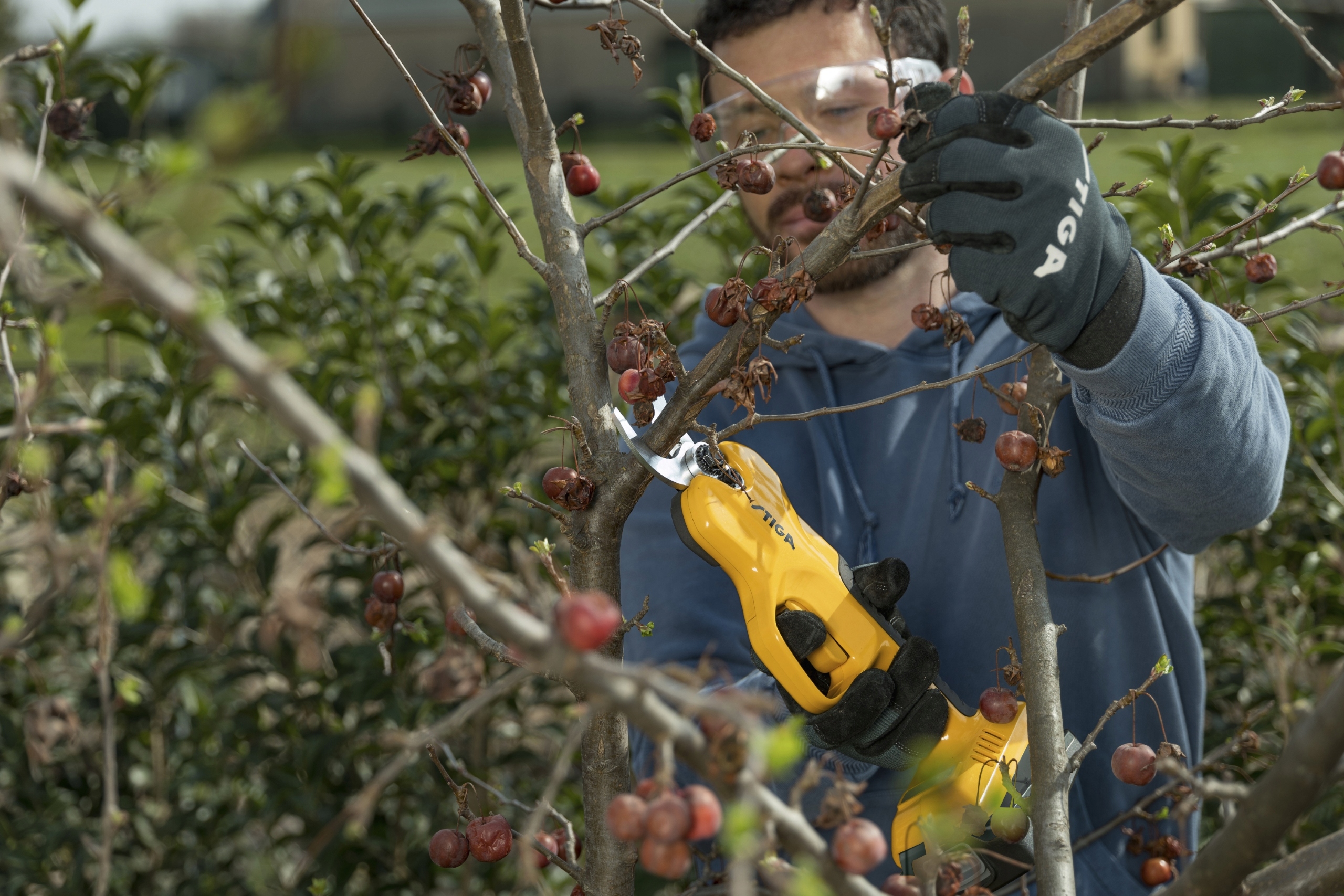 На одном зарядке ножницы обрезки могут сократить около 2000 веточек. Время между зарядкой батареи и его использованием. Стоит помнить, что это средняя работа во время тестов в разных условиях.