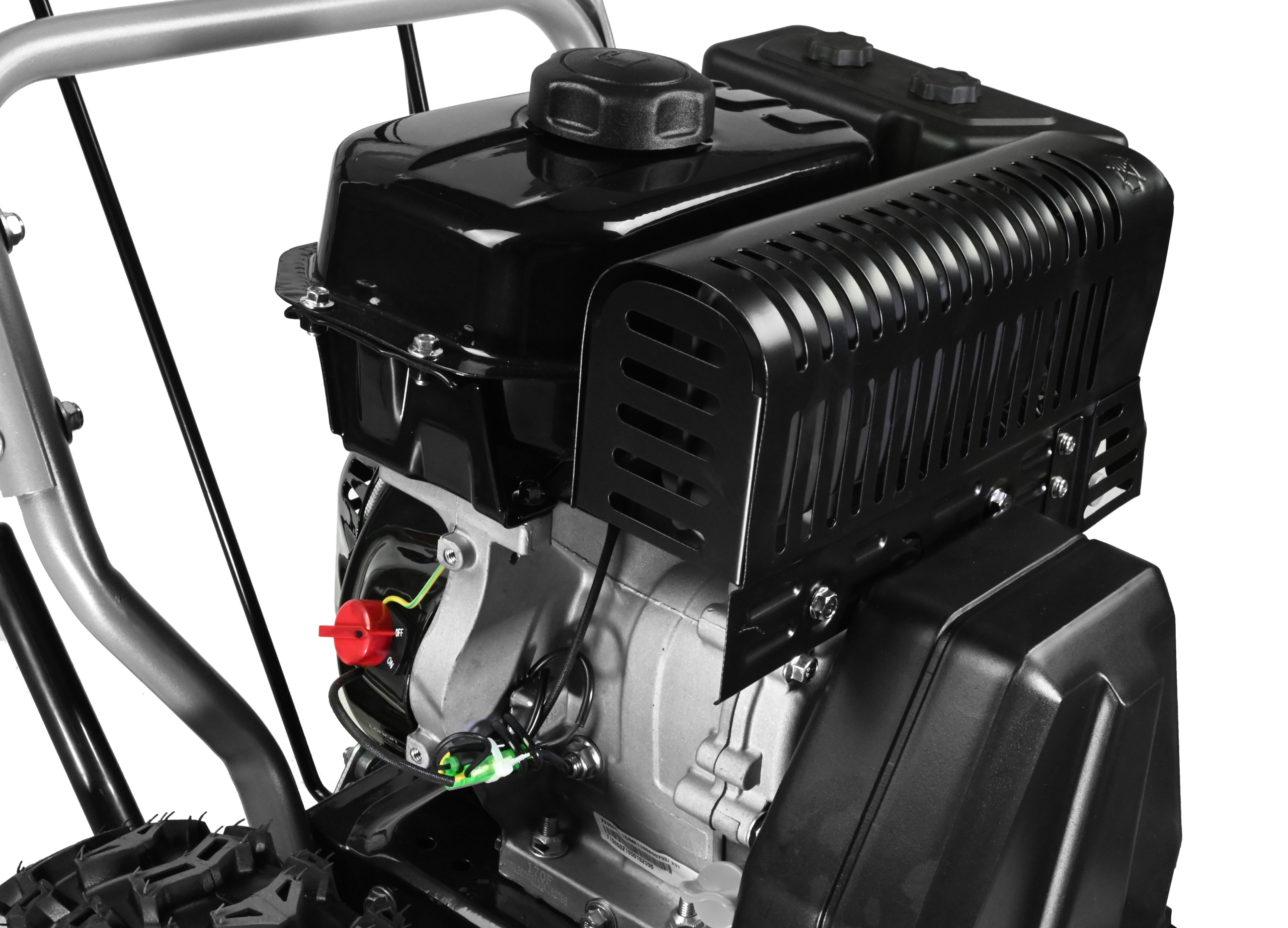 Двигатель номинальной мощностью более 4 кВт и объемом 212 куб.см прекрасно справится с листьями, песком и даже свежим снегом.