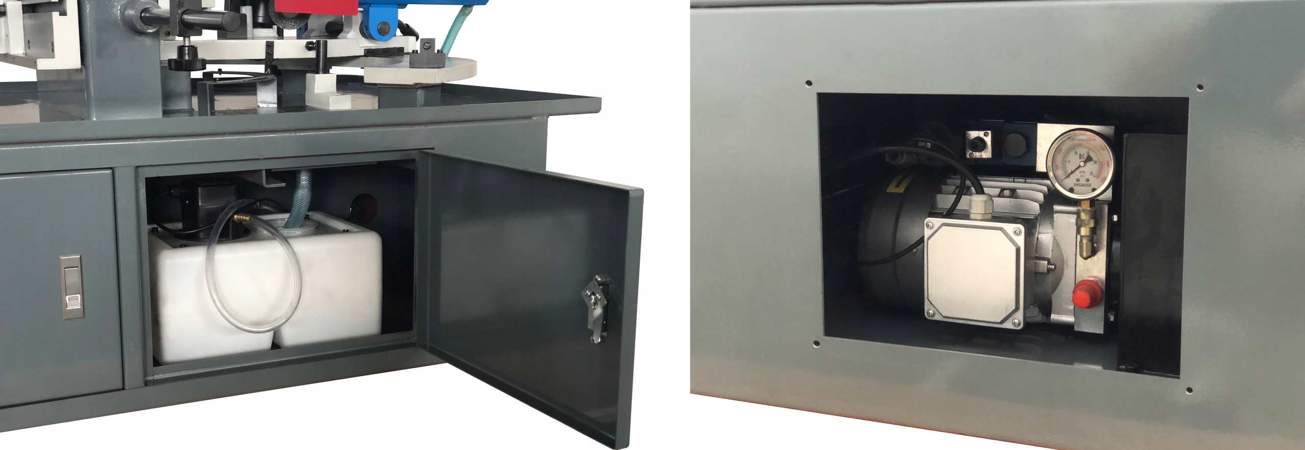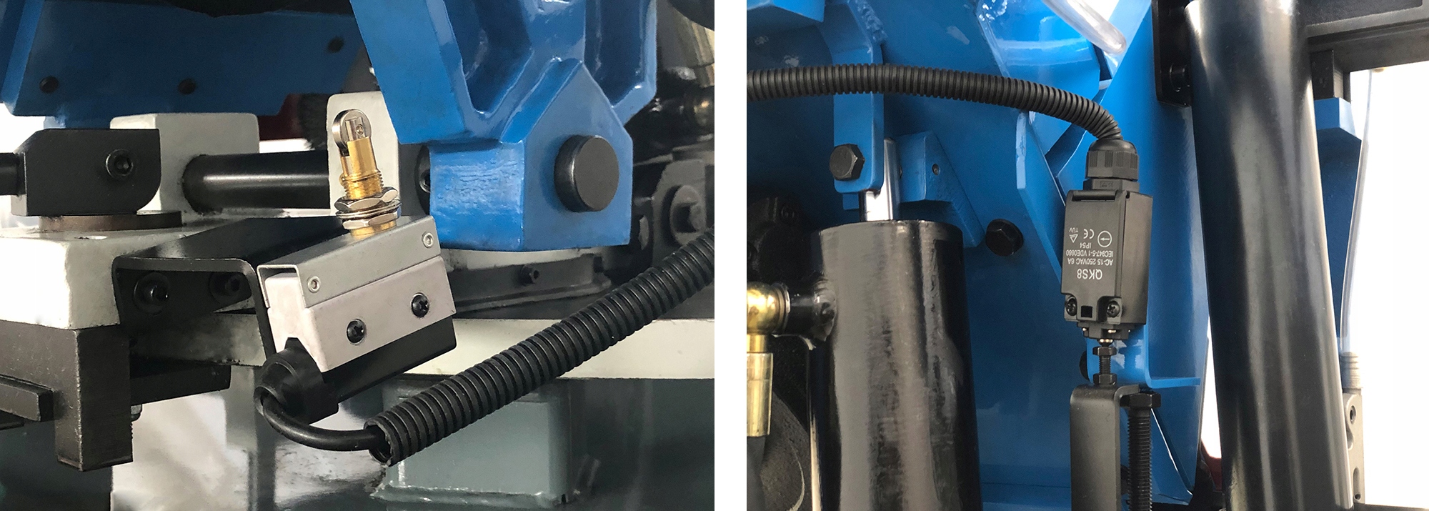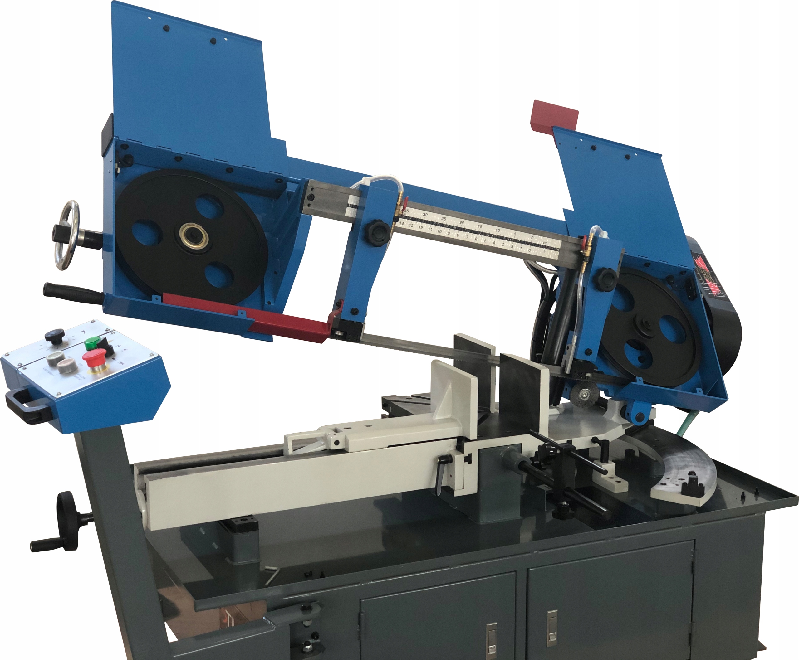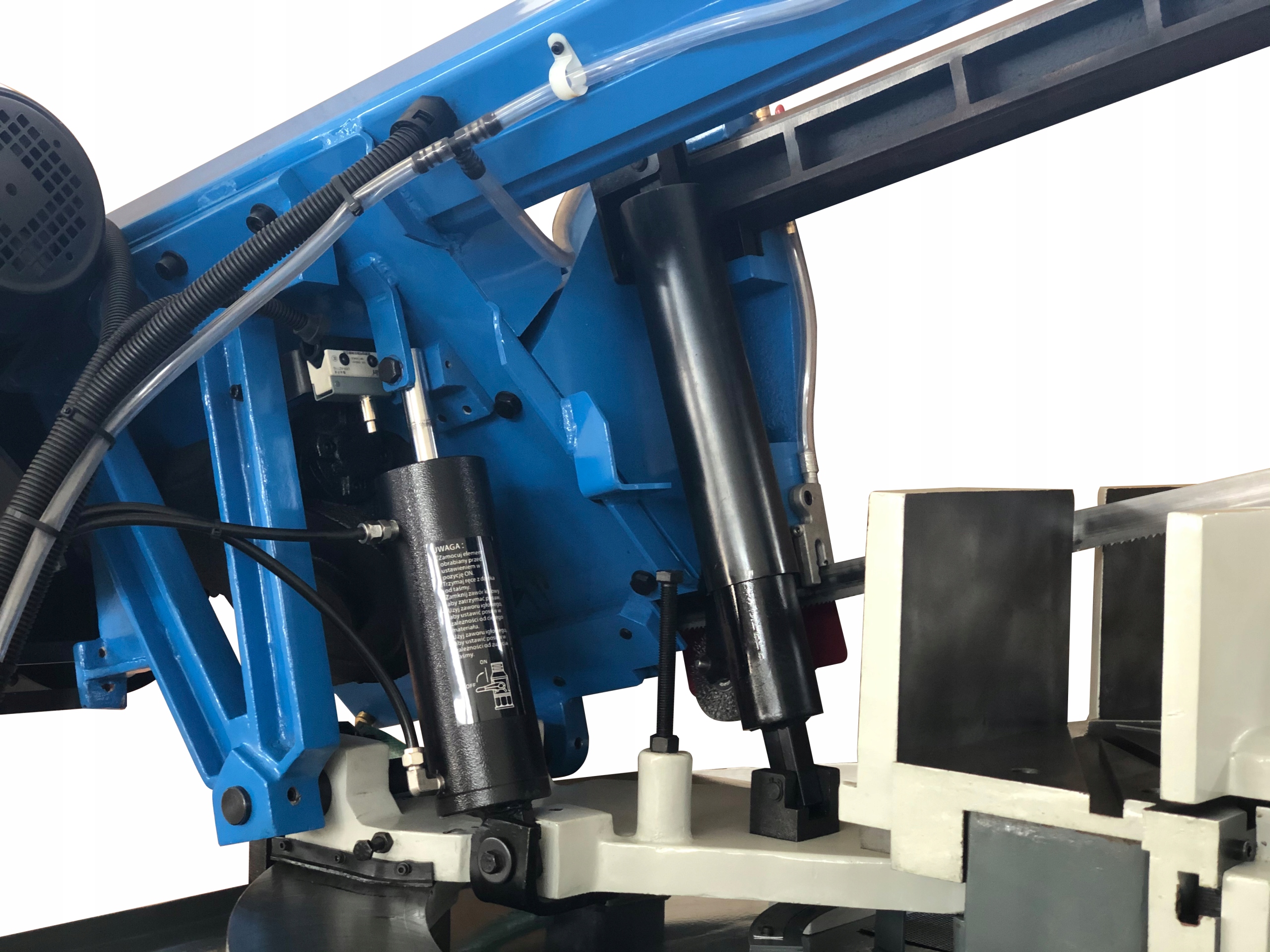 - В положении нижней руки (после разрезания материала). Привод режущей ленты и системы охлаждения автоматически выключен. Любая из крышек, дополнительная защита состоит в том, чтобы отключить автоматический резак в случае , разорвавшего ленту . Внутри есть отдельный бак охлаждающей жидкости с электропейкой и большой дренажной ванной. контроль на отдельном постаменте.