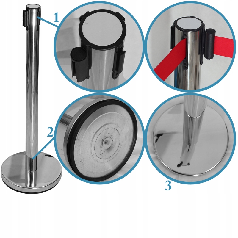 Надежное исполнение стойки и основание из прочной и эстетичной стали придают ей чрезвычайно впечатляющий вид. Заполненное цементом основание весом около 5 кг обеспечивает высокую устойчивость, что предохраняет от случайного опрокидывания отдельного столба или всей линии.