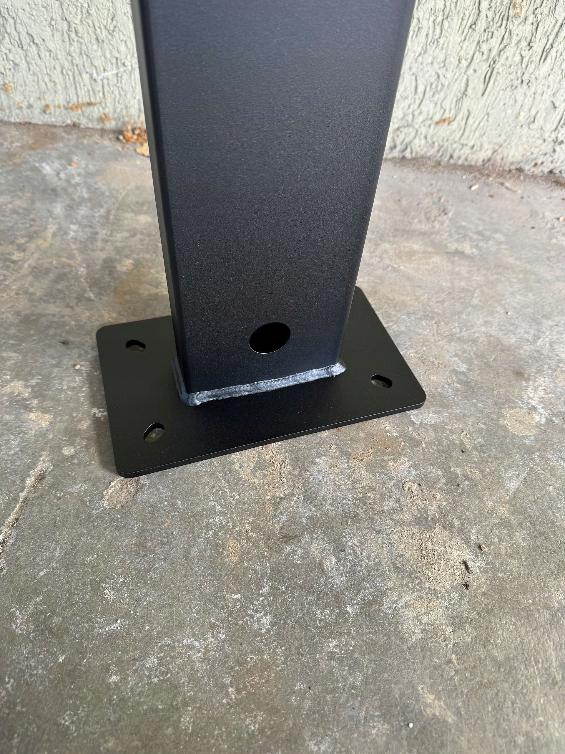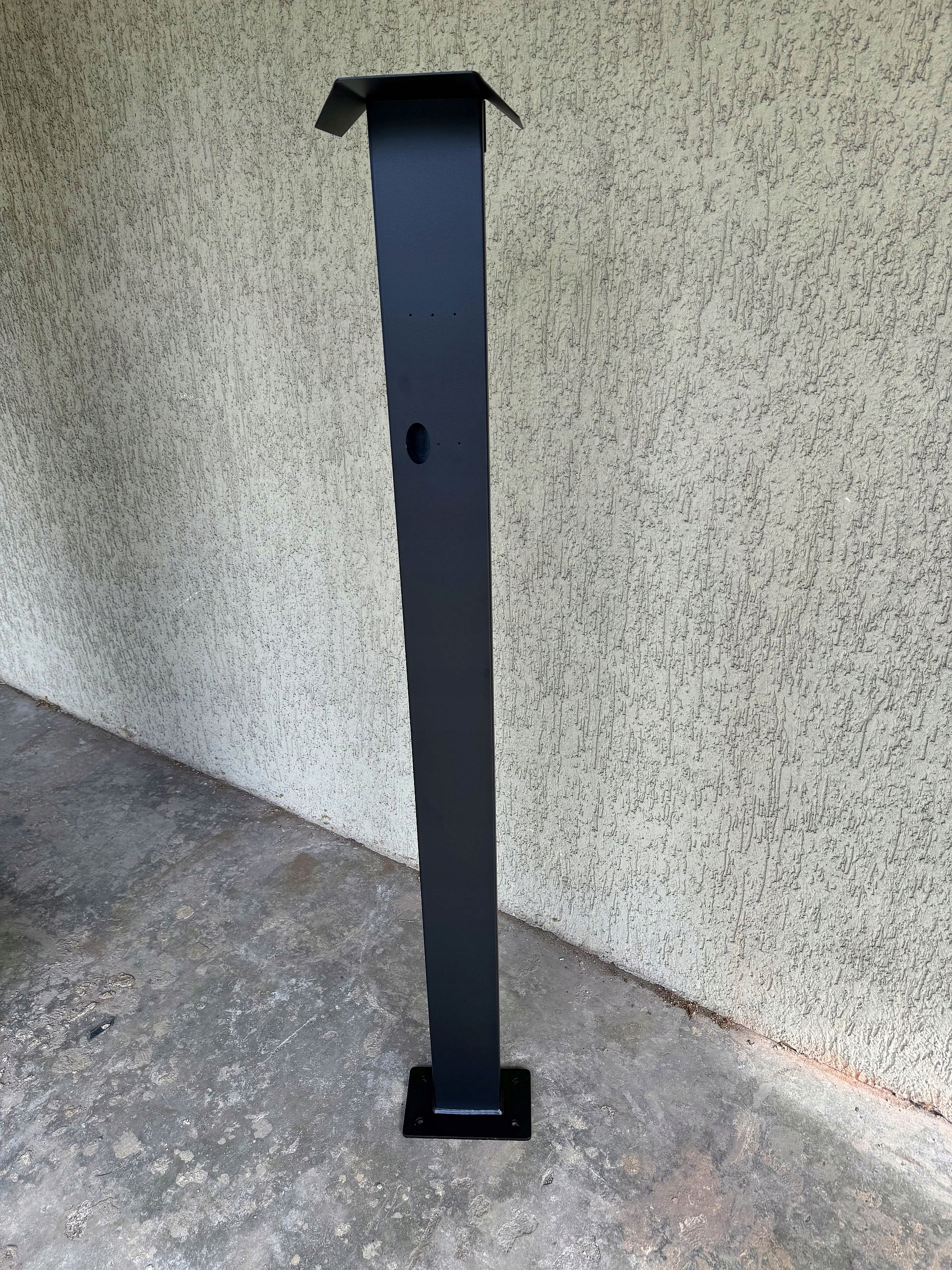 - Стойка изготовлена из конструкционной стали, оцинкована и покрыта порошковой краской (цвет конструкции RAL 9005). По запросу возможен другой цвет из палитры RAL.