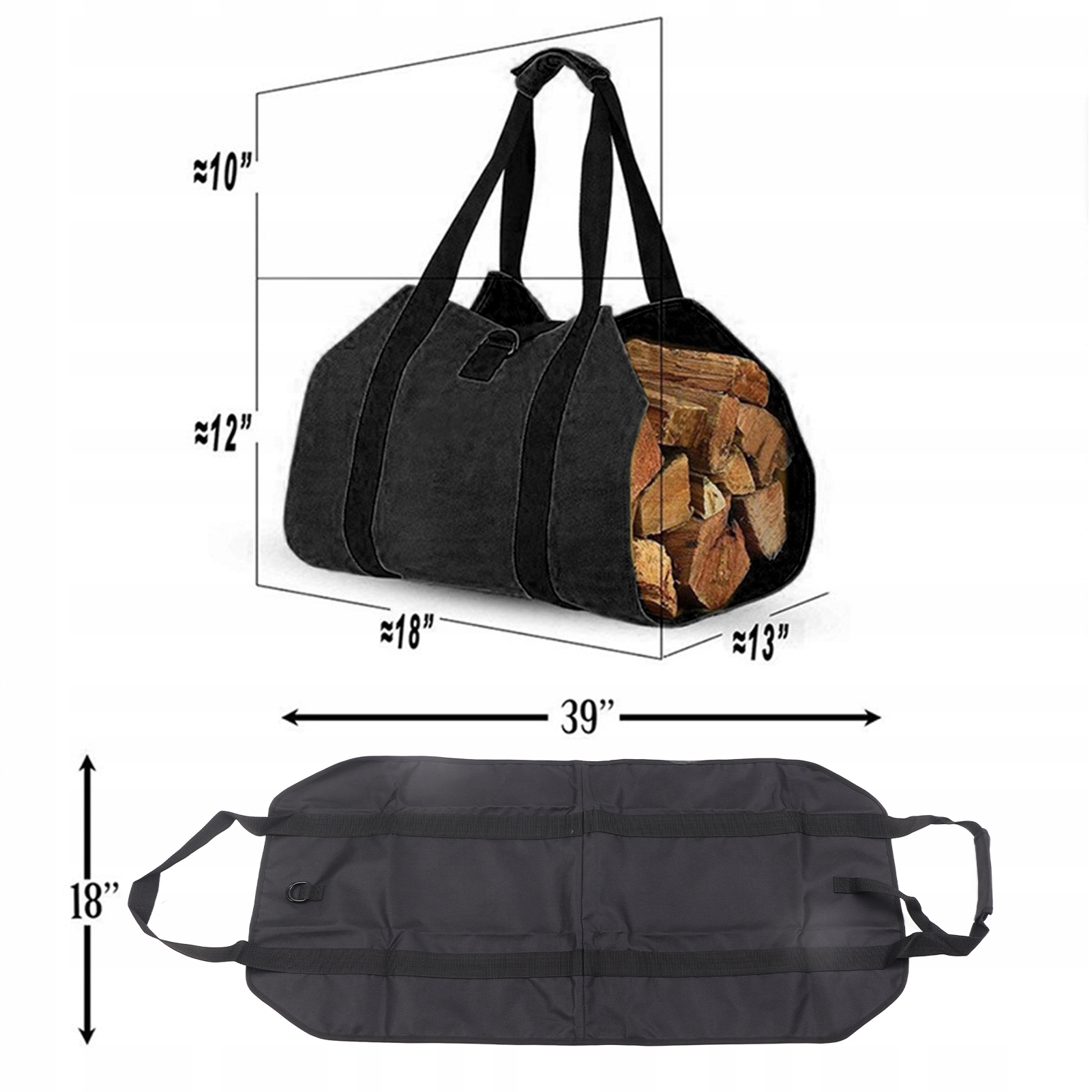 Подставка для дров, Большая вместимость, Двойная ручка, Регулируемый эластичный ремень. Деревянная сумка Оксфорд 600D. Уличный контейнер для дров, черный