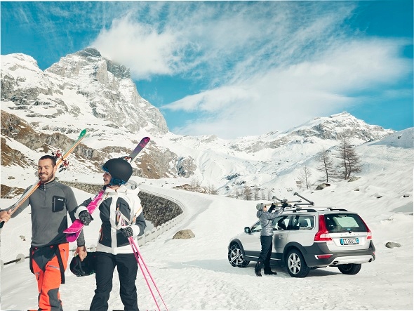 - Держатель на крыше для всех типов лыж и сноубордов.