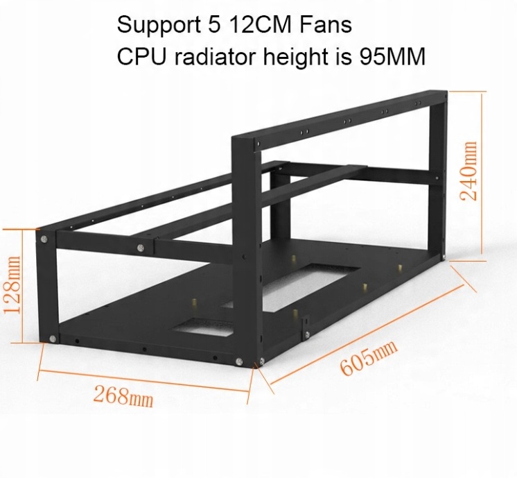 b> (видеокарта в комплект не входит). Расстояние между 6 картами составляет 81 мм. Длина видеокарты не ограничена.✅Стандартный дизайн: Прочная открытая рама для майнинга спроектирована в соответствии со стандартным отверстием материнской платы ATX, видеокарты, жесткого диска и блока питания. поставлять. Для достижения эффективного охлаждения и обеспечения эффективной работы оборудования можно установить четыре охлаждающих вентилятора.