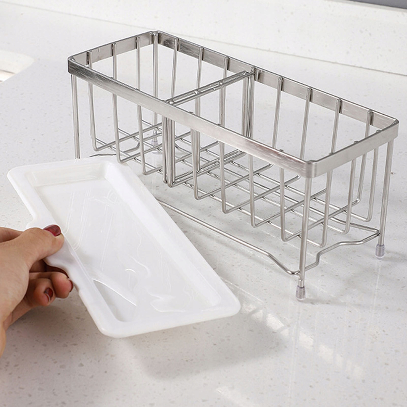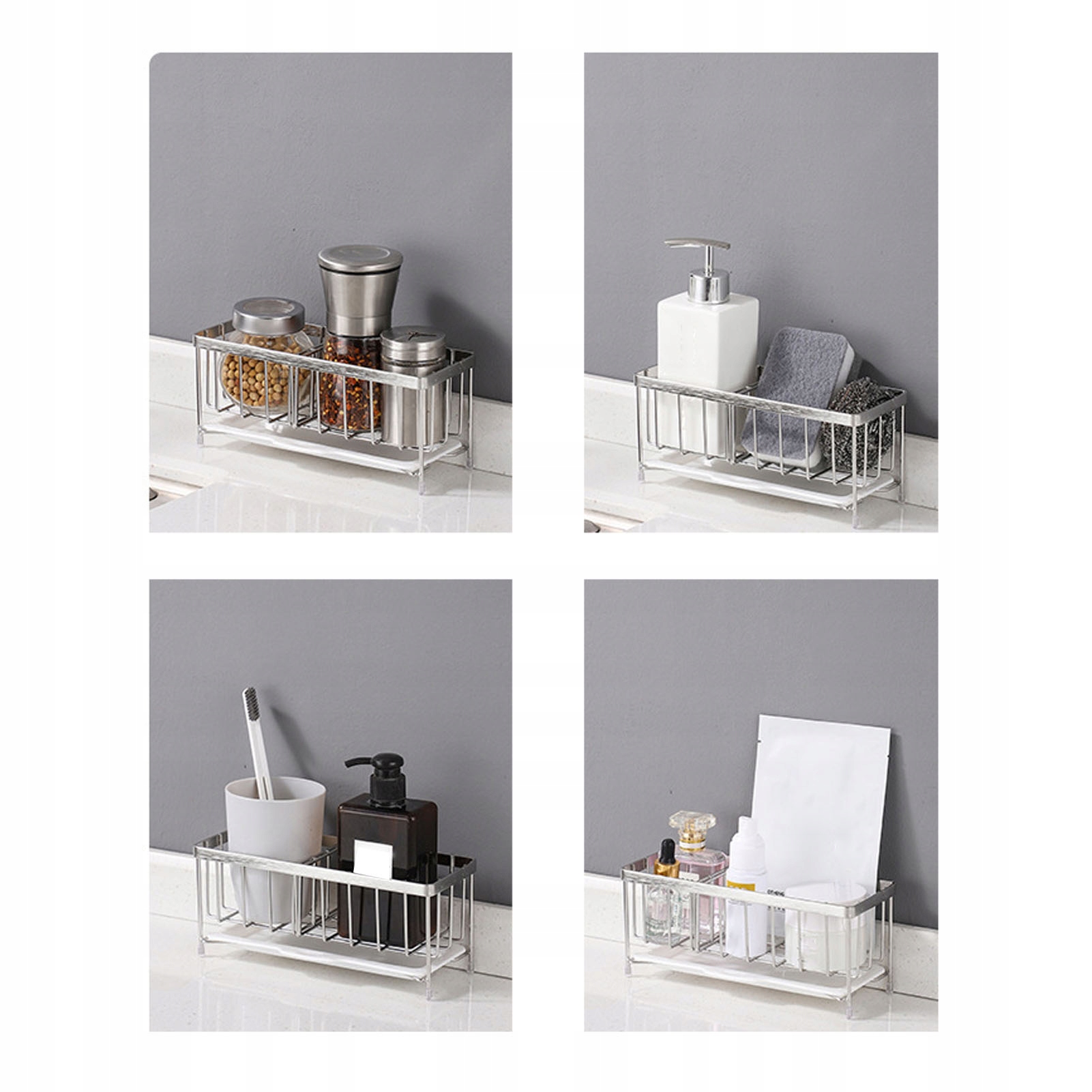 Особенность:1. Основное назначение: в этой корзине для раковины можно хранить кухонные принадлежности, такие как губки, шарики из стальной проволоки и тряпки, с функциями дренажа и хранения.