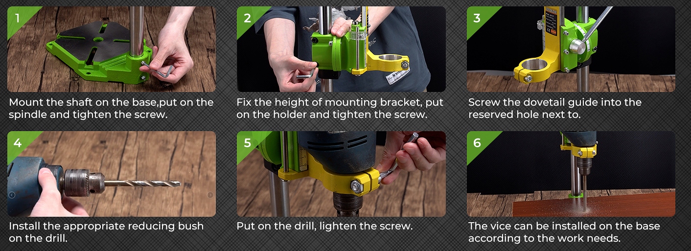 - Высота держателя: С его помощью вы можете зафиксировать зажим на рабочей высоте или длине дрели, обеспечивая дополнительную устойчивость.