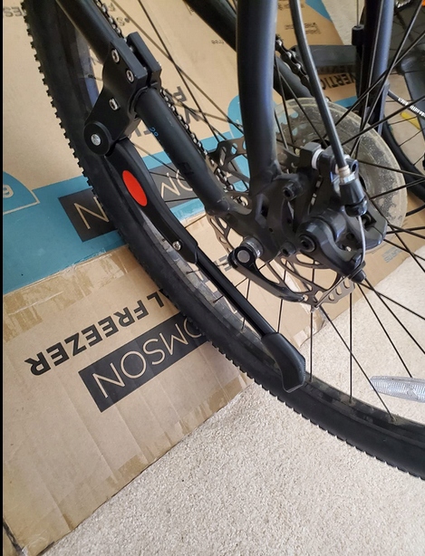 Ножка очень проста в установке. Просто поместите подставку на раму рядом с задним колесом и скрепите ее зажимом с помощью трех винтов с внутренним шестигранником.Стойка также подходит для велосипедов с дисковыми тормозами. Установка занимает всего минуту.