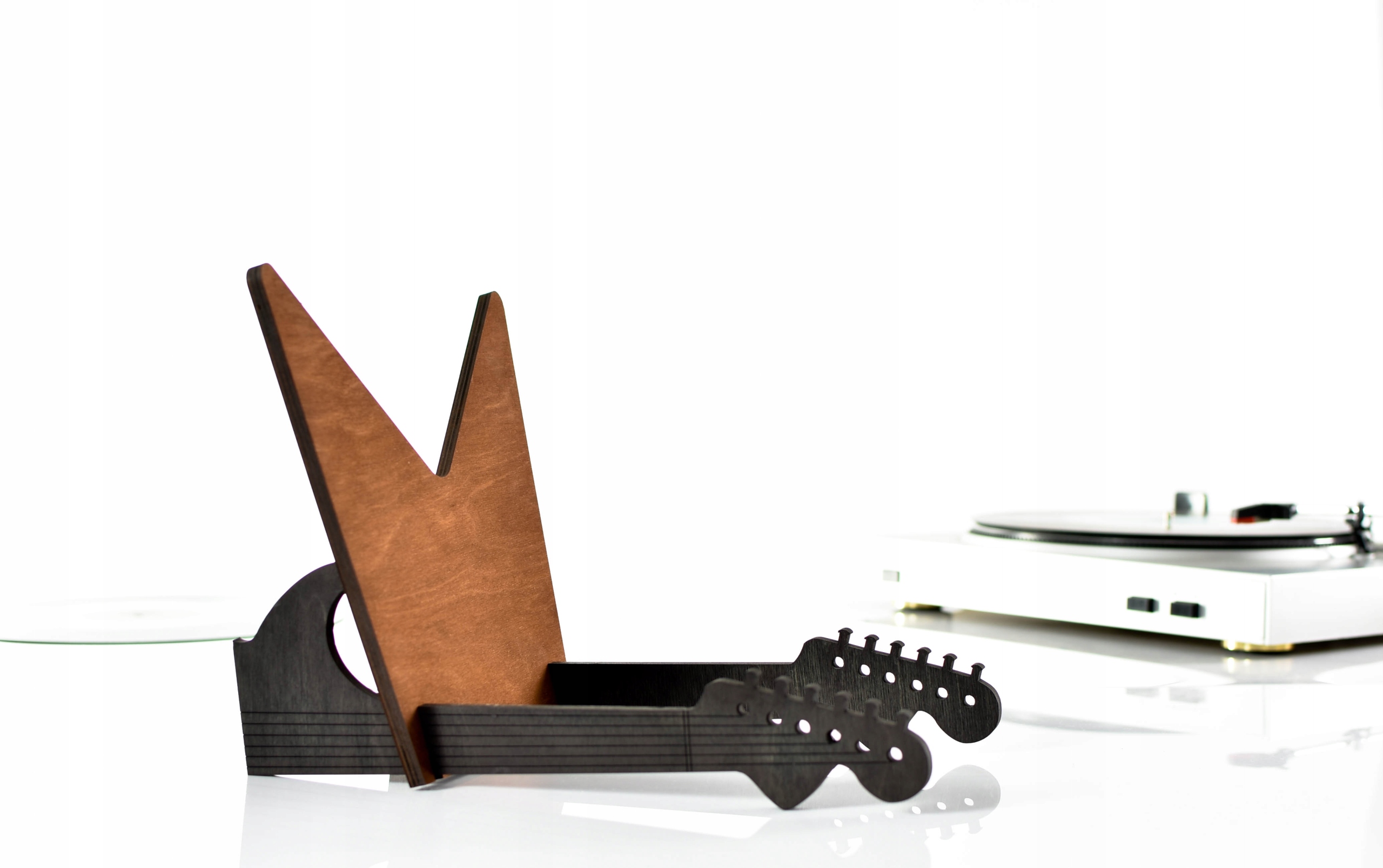 Интересный, уникальный и функциональный продукт. Представляю вам подставку для виниловых пластинок. С гитарным мотивом. Для любителей ретро-музыки. Идеально подходит для подарка.