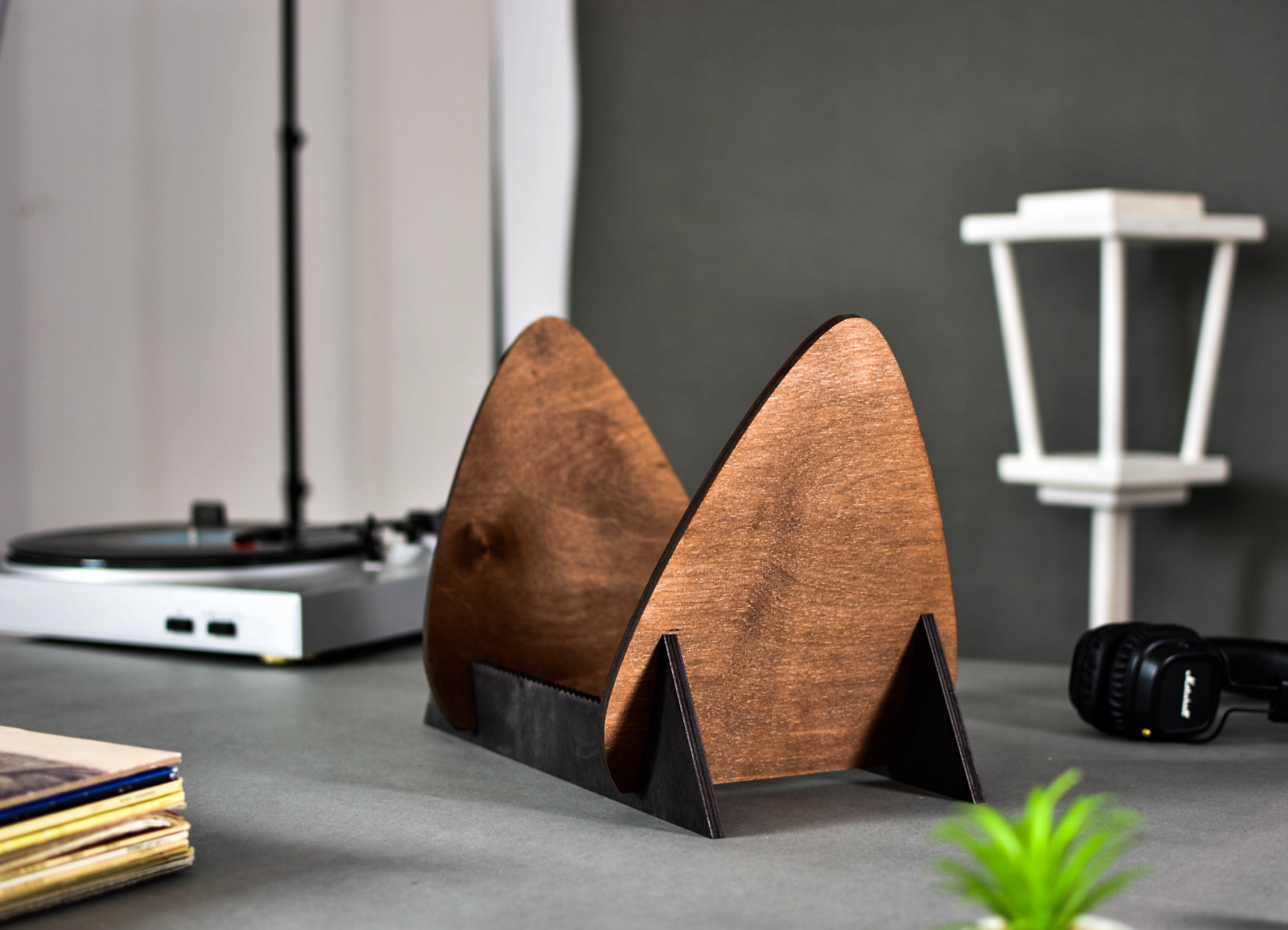 Интересный, уникальный и функциональный продукт. Представляю вам подставку для виниловых пластинок. С мотивом медиатора. Для любителей ретро-музыки. Идеально подходит для подарка.