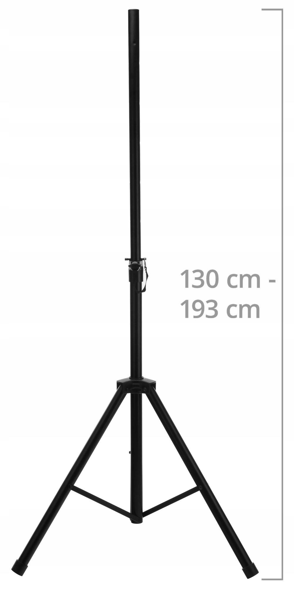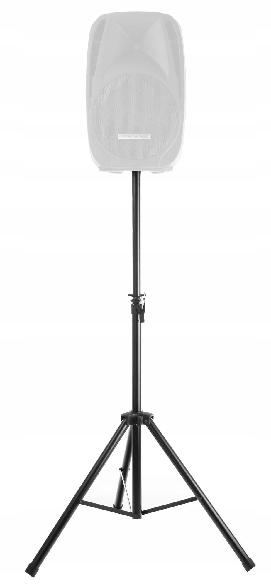 Подставка для динамика изготовлена из черной стали, имеет устойчивую трехопорную конструкцию и большие зажимные винты для крепления. Подставку можно удлинить на высоту от 130 до 193 см, максимальная нагрузка 50 кг, вес 3,3 кг.